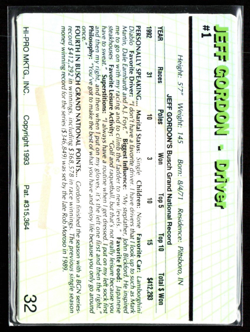 | Jeff Gordon 1993 Action Packed In Person Auto Auto #1 |
