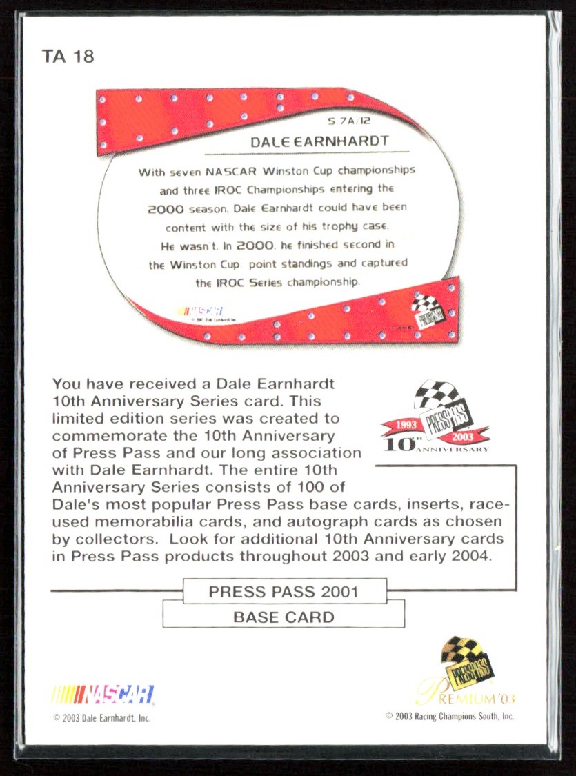 | Dale Earnhardt 2003 Press Pass 10th Anneversary Series #TA18 |