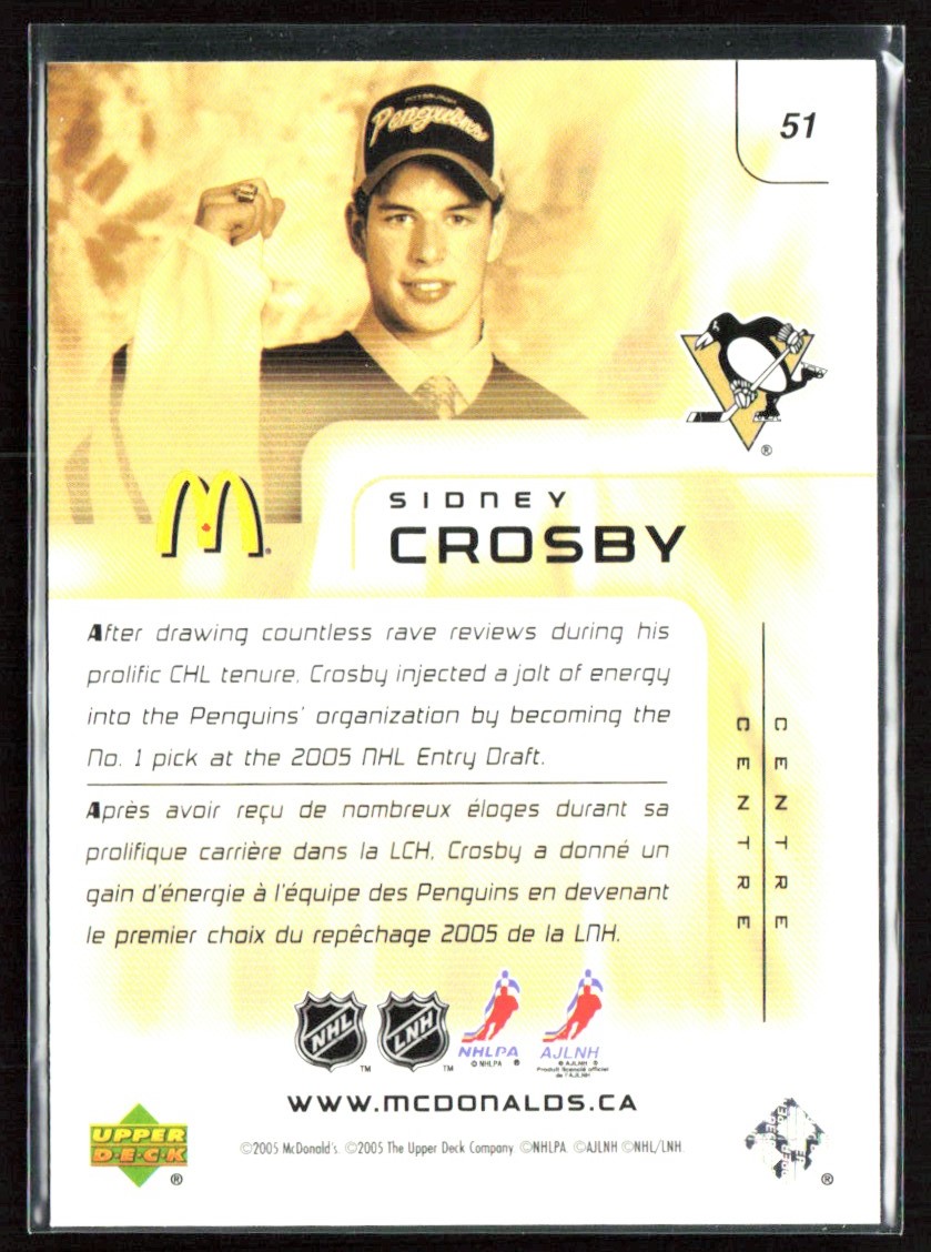 | Sidney Crosby 2005-06 Upper Deck McDonald's RC J #51 Pittsburgh Penguins |