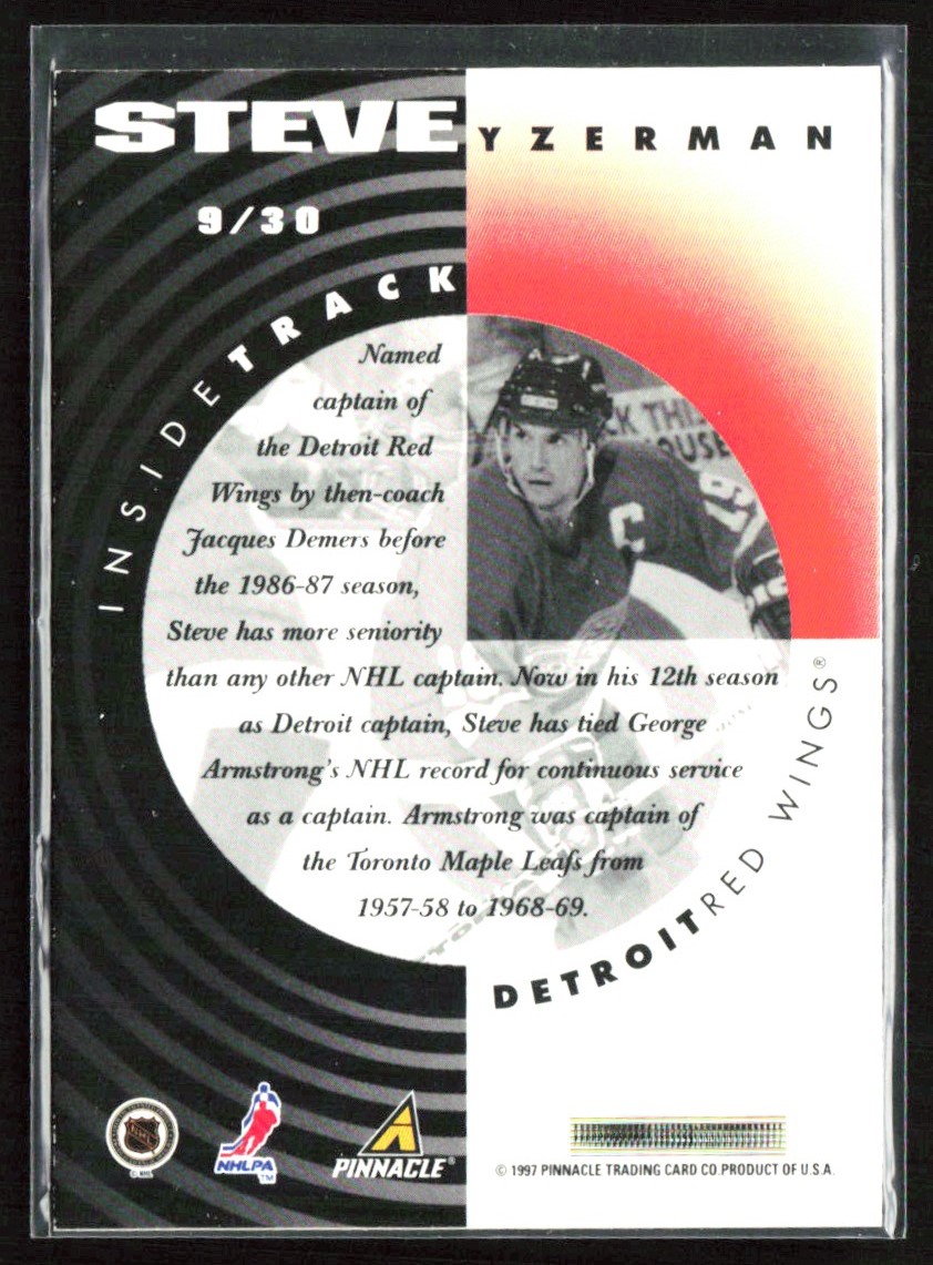 | Steve Yzerman 1997-98 Pinnacle Inside Track #9 San Jose Sharks |