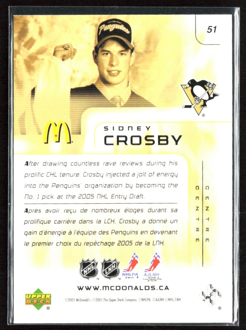| Sidney Crosby 2005-06 Upper Deck McDonald's RC U #51 Pittsburgh Penguins |