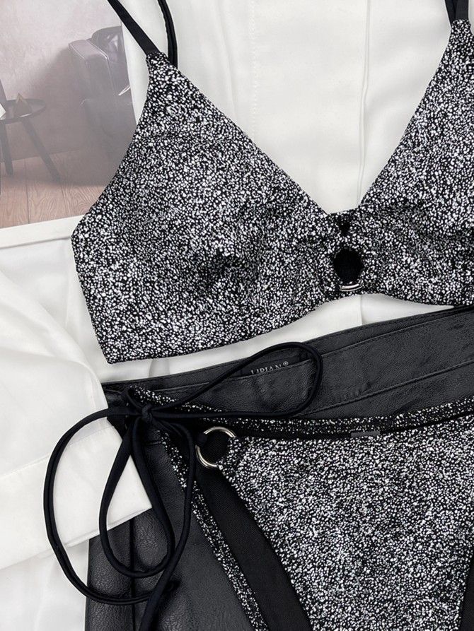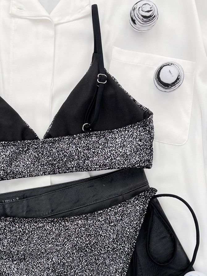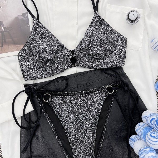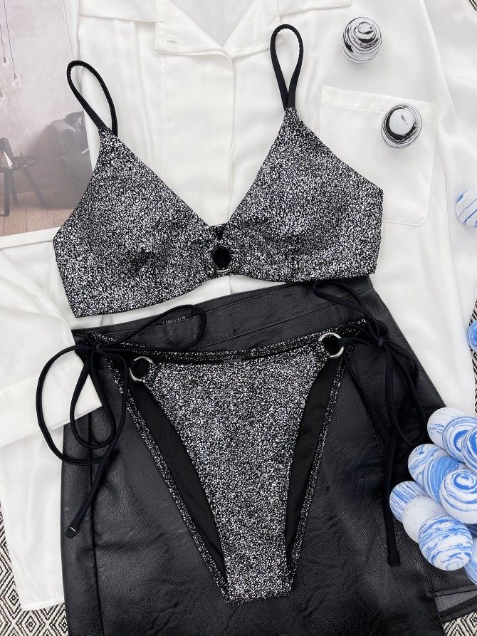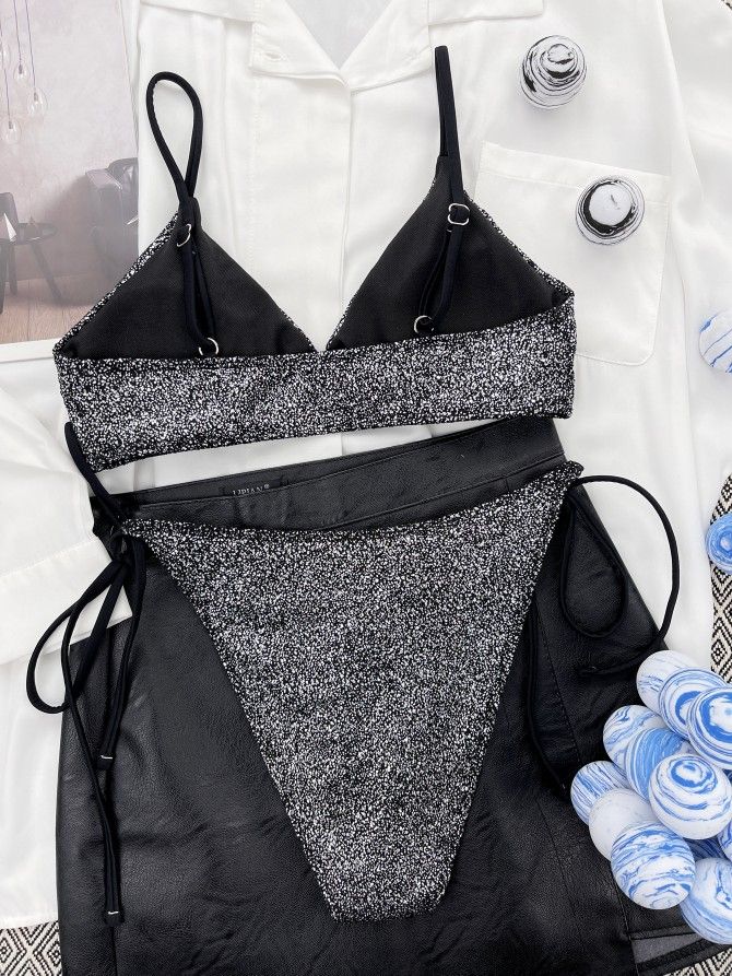 Silver Lurex Bikini Set Two Piece Swimsuit Shiny Beachwear Women Vacation Outfit