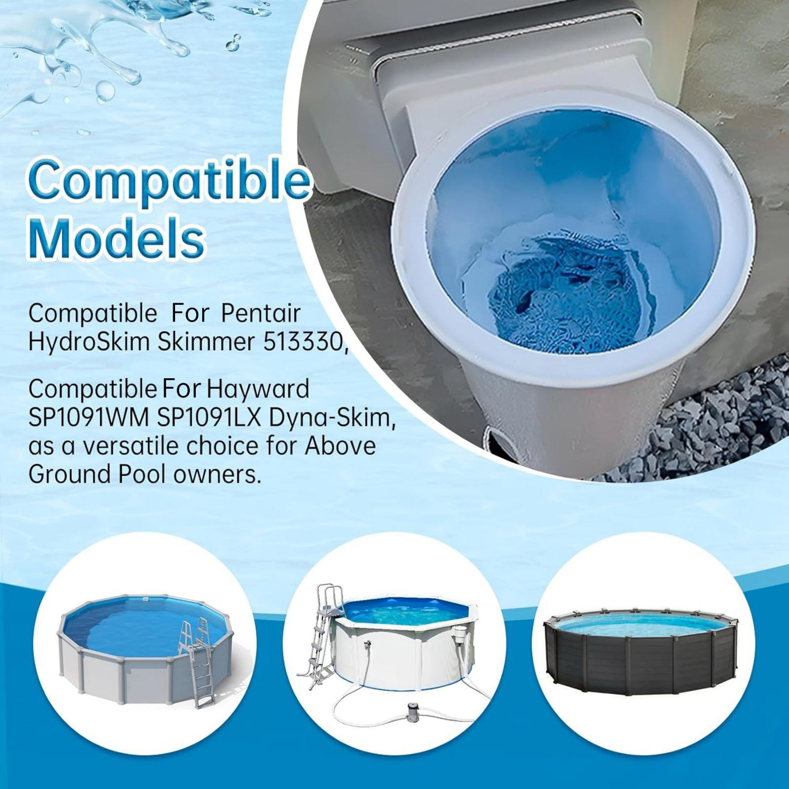 Features: 1. Universal Compatibility: Our 513330 Skimmer Basket Is Not Only Compatible With For Pentair Hydroskim Skimmer 513330, But It Also Fits The For Hayward SPX1091C SP1091WM SP1091LX Dyna-Skim, Making It A Versatile Choice For Above Ground Pool Owners. Enjoy Superior Filtration Regardless Of Your Pool Model! 2. Durable, All-Weather Material: Rafted From High-Toughness Plastic, This Pool Filter Basket Can Endure Both The Sizzling Summer Heat And Biting Winter Cold. With Its Exceptional Durability, Our 513330 Above Ground Pool Skimmer Basket Promises A Long Life Of Reliable Service. 3. Efficient Filtration: Thanks To Its High-Density Mesh Construction, Our 513330 Skimmer Basket Efficiently Filters Out Pool Debris, Preventing Pipe Blockages And Preserving Your Pool' S Pristine Cleanliness. 4. User-Friendly Design: Designed With Convenience In Mind, This Pool Filter Basket Features A Handle For Easy Removal. No More Dirtying Your Hands! Maintenance Becomes As Breezy As A Summer Swim With Our 513330 Above Ground Pool Skimmer Basket. Specifications: Type: Pool Skimmer Basket Condition: 100% New Material: Plastic OEM: 513330 Packaging Includes: 1* Pool Skimmer Basket