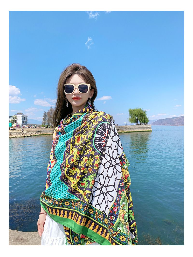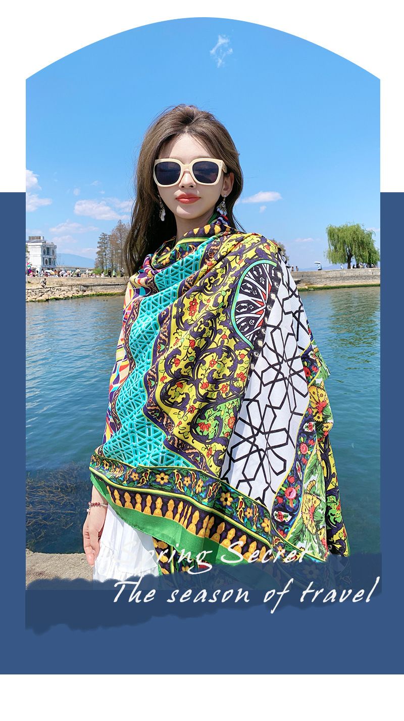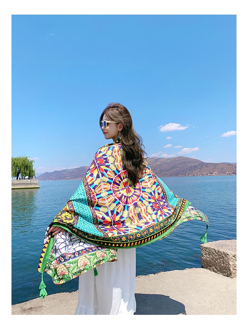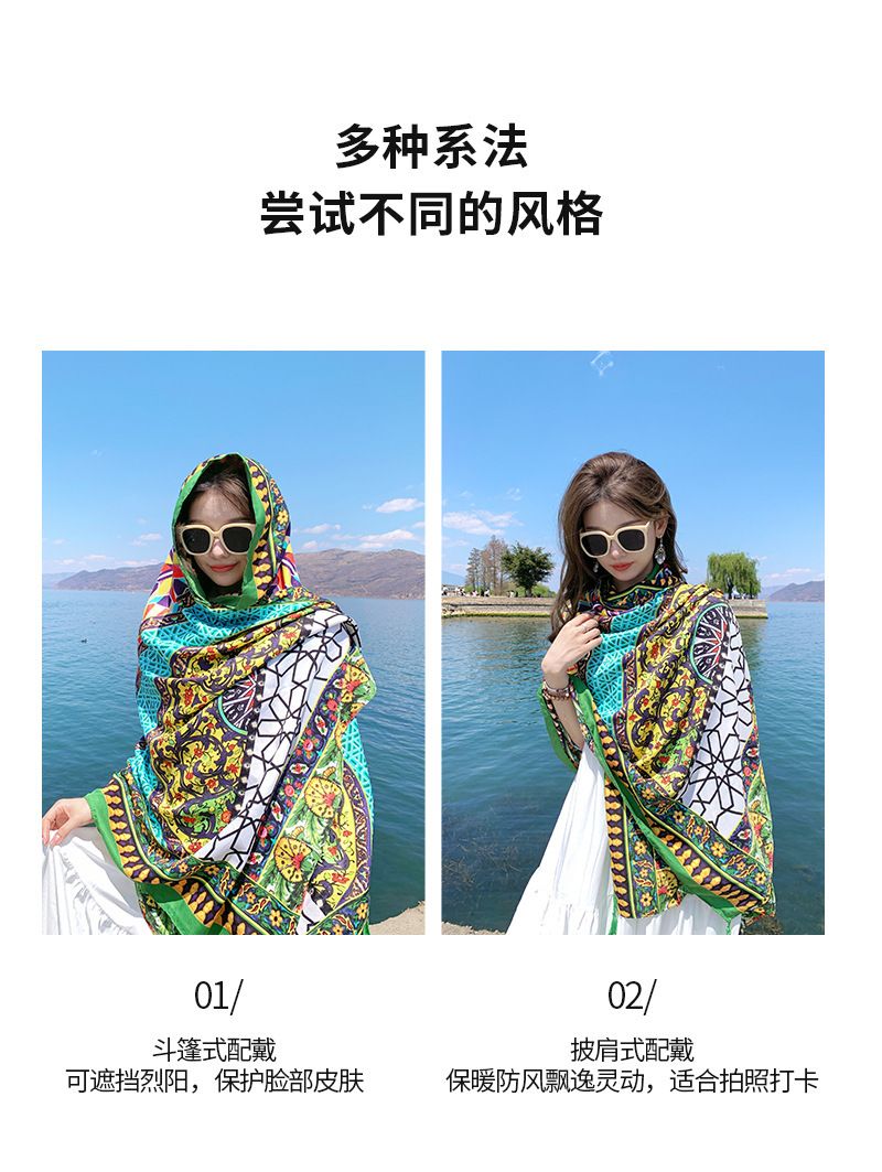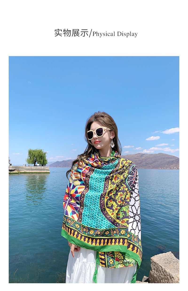 夏季棉麻围巾女新款波西米亚民族风格超大披肩两用夏防晒沙滩丝巾