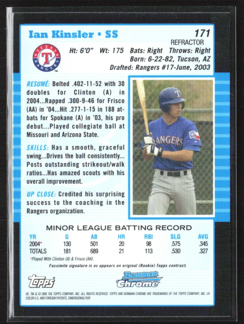 | Ian Kinsler 2005 Bowman Chrome Refractor A #171 Texas Rangers |