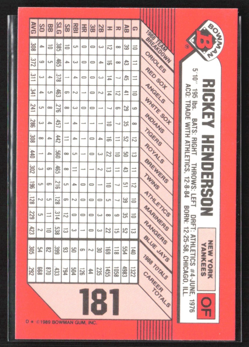 | Rickey Henderson 1990 Bowman Tiffany A #181 New York Yankees |