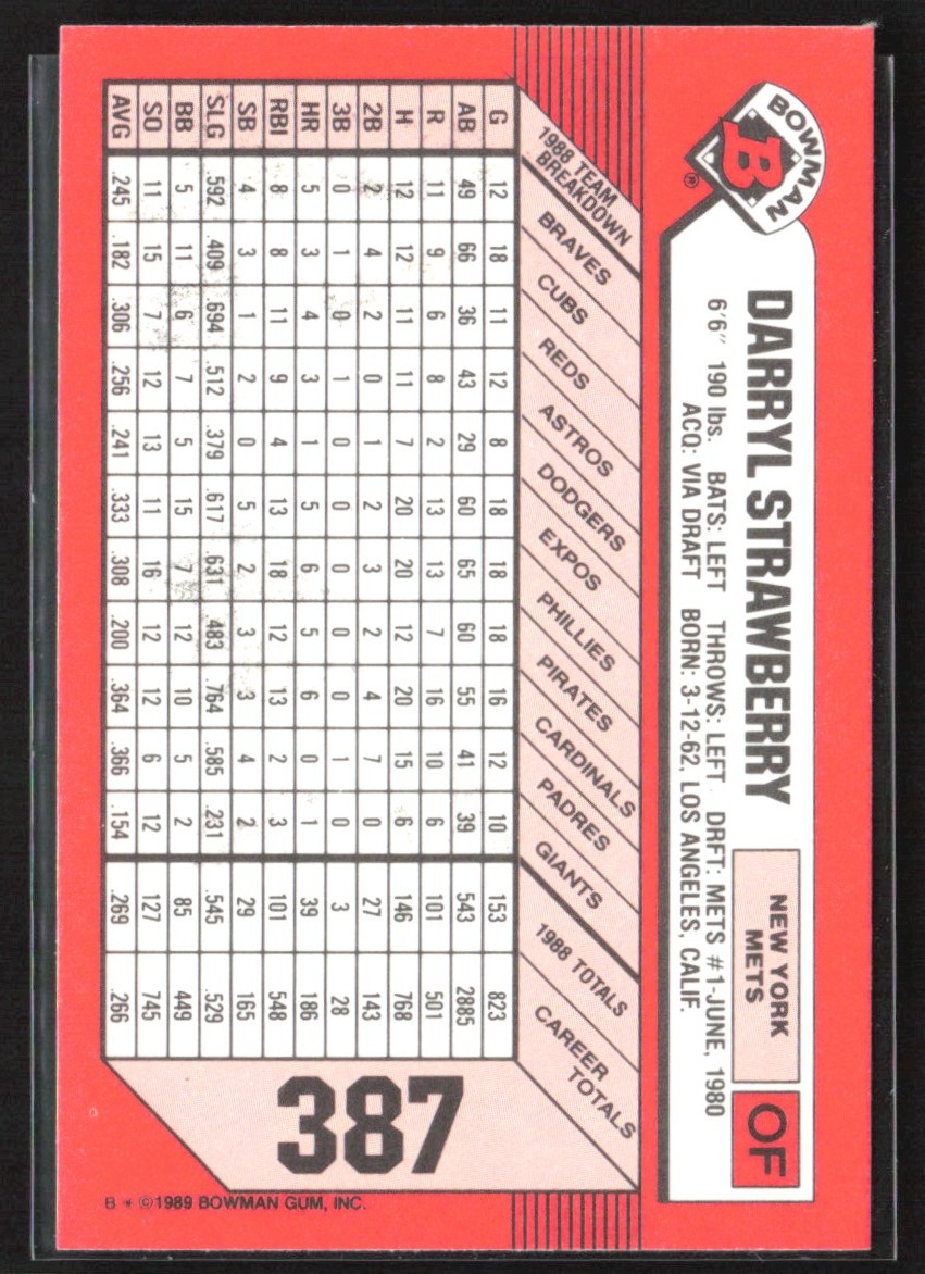 | Darryl Strawberry 1989 Bowman Tiffany B #387 New York Mets |