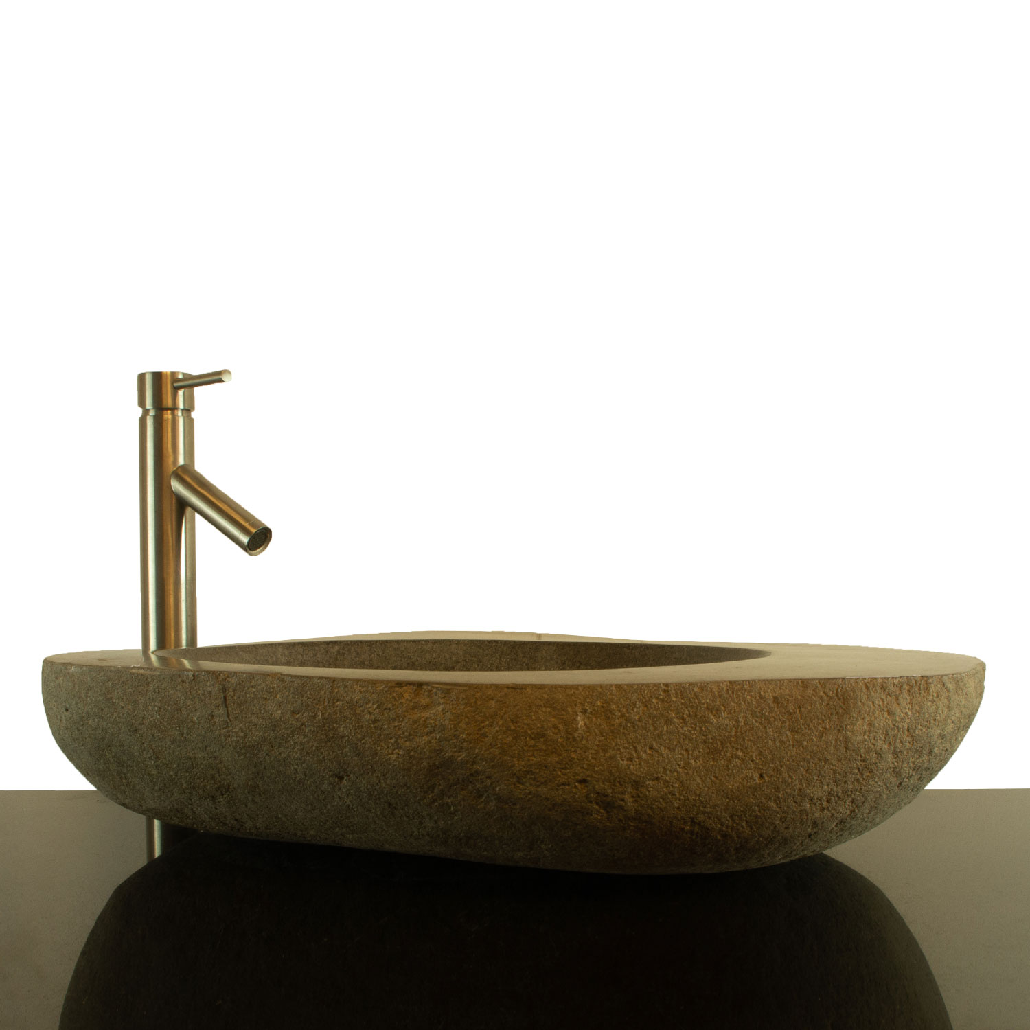 Bring the tranquility of nature into your home with this beautiful river stone counter top sink. Absolutely stunning, this vessel sink is sure to be a classy and unique addition to any home! No two are alike!