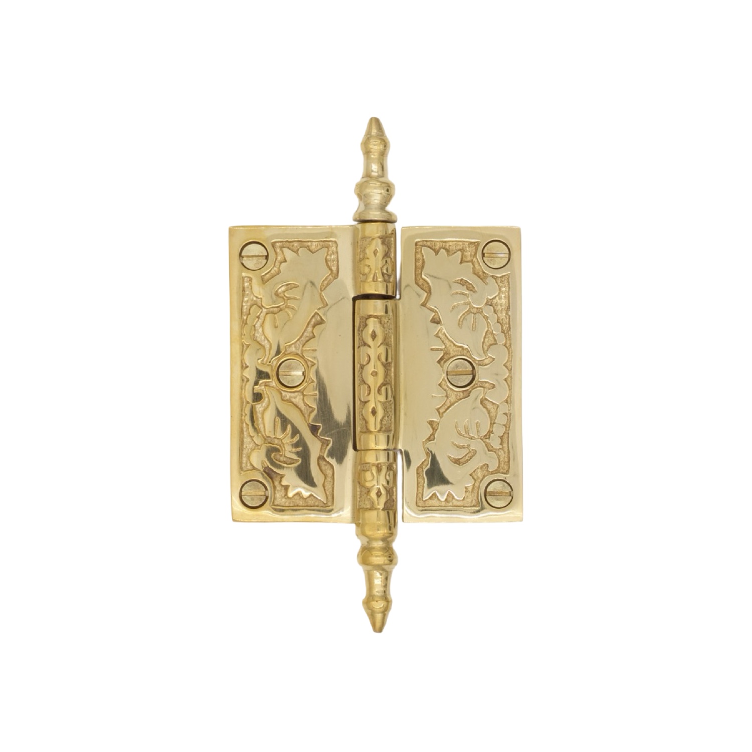 This solid cast brass, Victorian style door hinge features screwable tips allowing for removal of the pin in case you wish to move locations of your door without unscrewing the hinge.