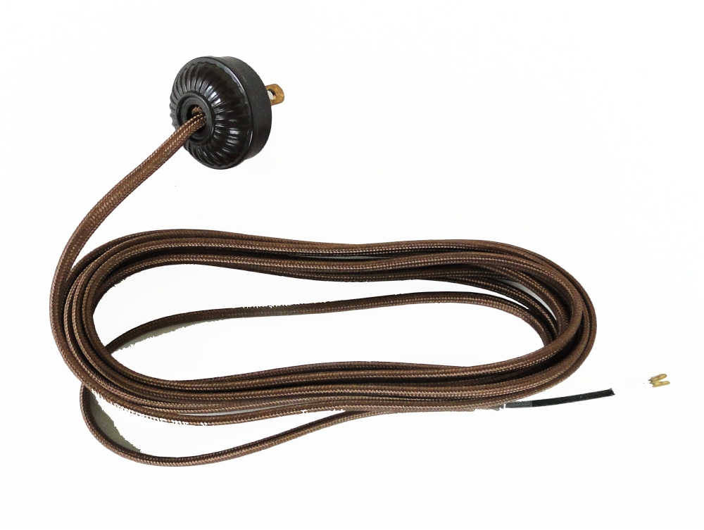 Replacement Vintage style lamp cord and plug 10 ft. rayon covered lamp cord sets with early style, brown color lamp plugs, safe and convenient copper-capped wire tips, and plastic insulation covering all stranded wire. Antique style as used on most portable lamps in the early part of the 20th century. Fine quality cord but not U.L. listed.