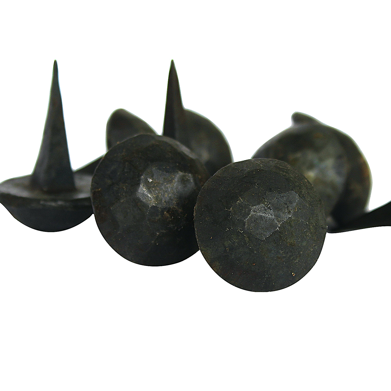 Decorative Iron nails used for transforming an ordinary door or gate into something more. An ancient style piece of hardware, these were used to decorate a wide variety of objects, from doors, ships, carts, and furniture. Handmade so each nail will have a slight variation is size and appearance.