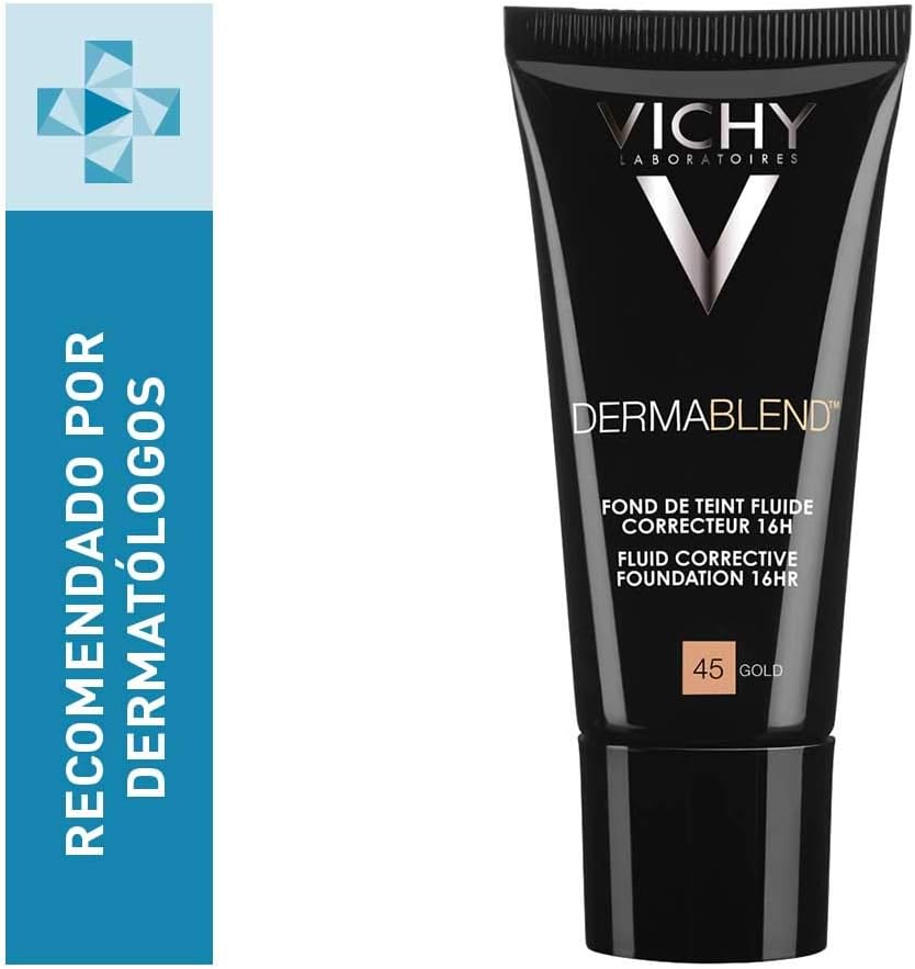 VICHY Demablend Fluide Correct Foundation 16HR 30ml - Couleur: 45: L'or a une texture de couverture malléable et assure une couverture de 12 heures sans effet de masque.