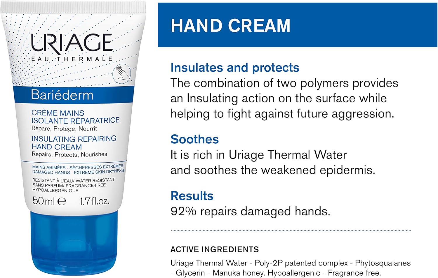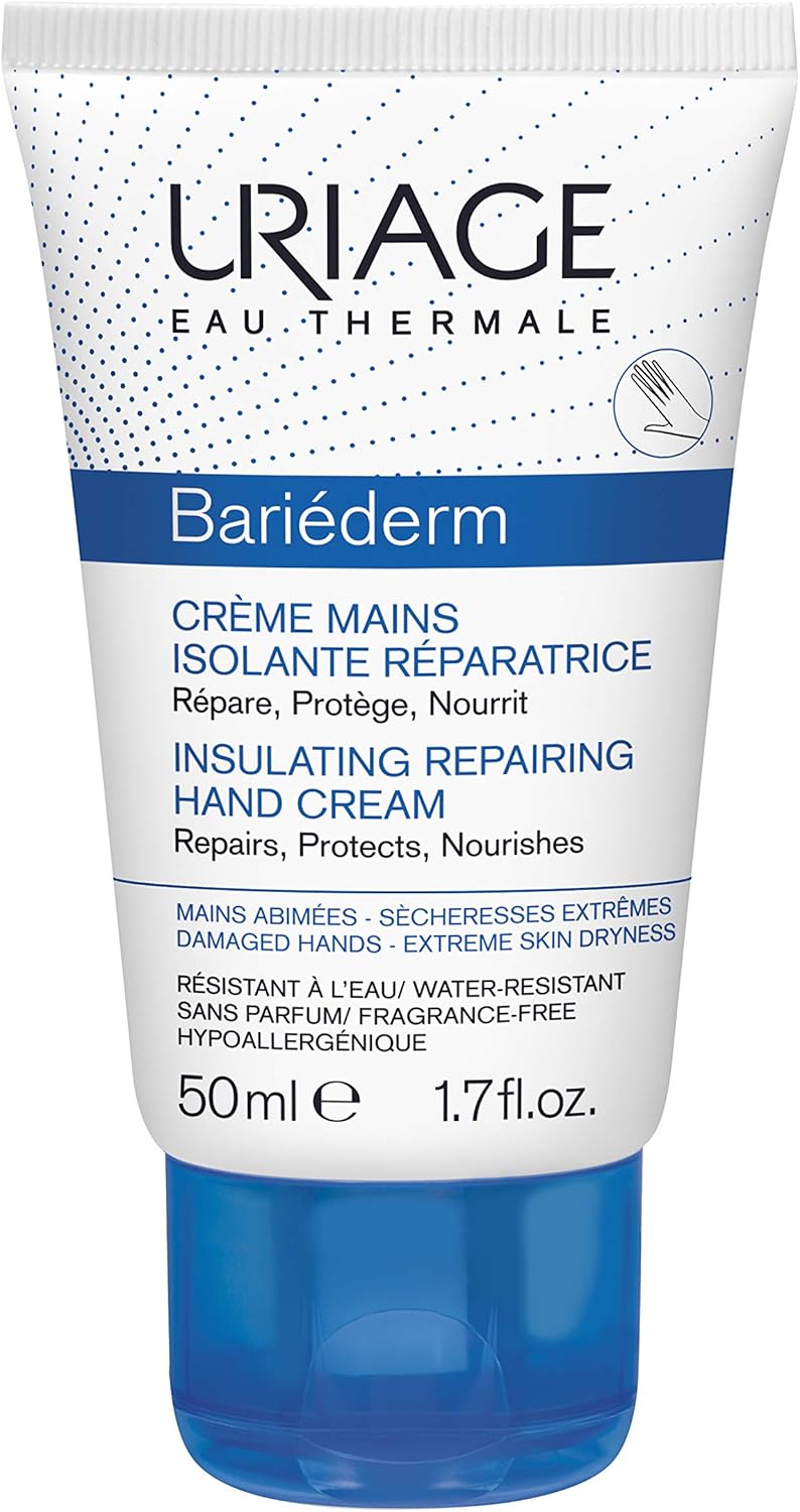 Uriage Bariéderm aislando crema de manos 50 ml con ricas reparaciones de texturas, protege, nutre las manos dañadas, extremadamente secas.