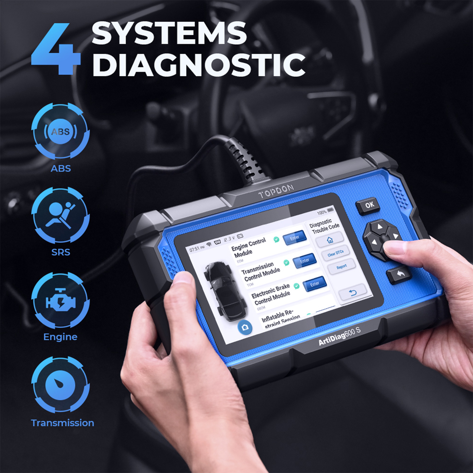 4 System Diagnostic Tool: use this car system diagnostic tool to deep dive into Engine/ABS/SRS/Transmission systems for a health check; read codes, access plenty of live data for any fault notifications.