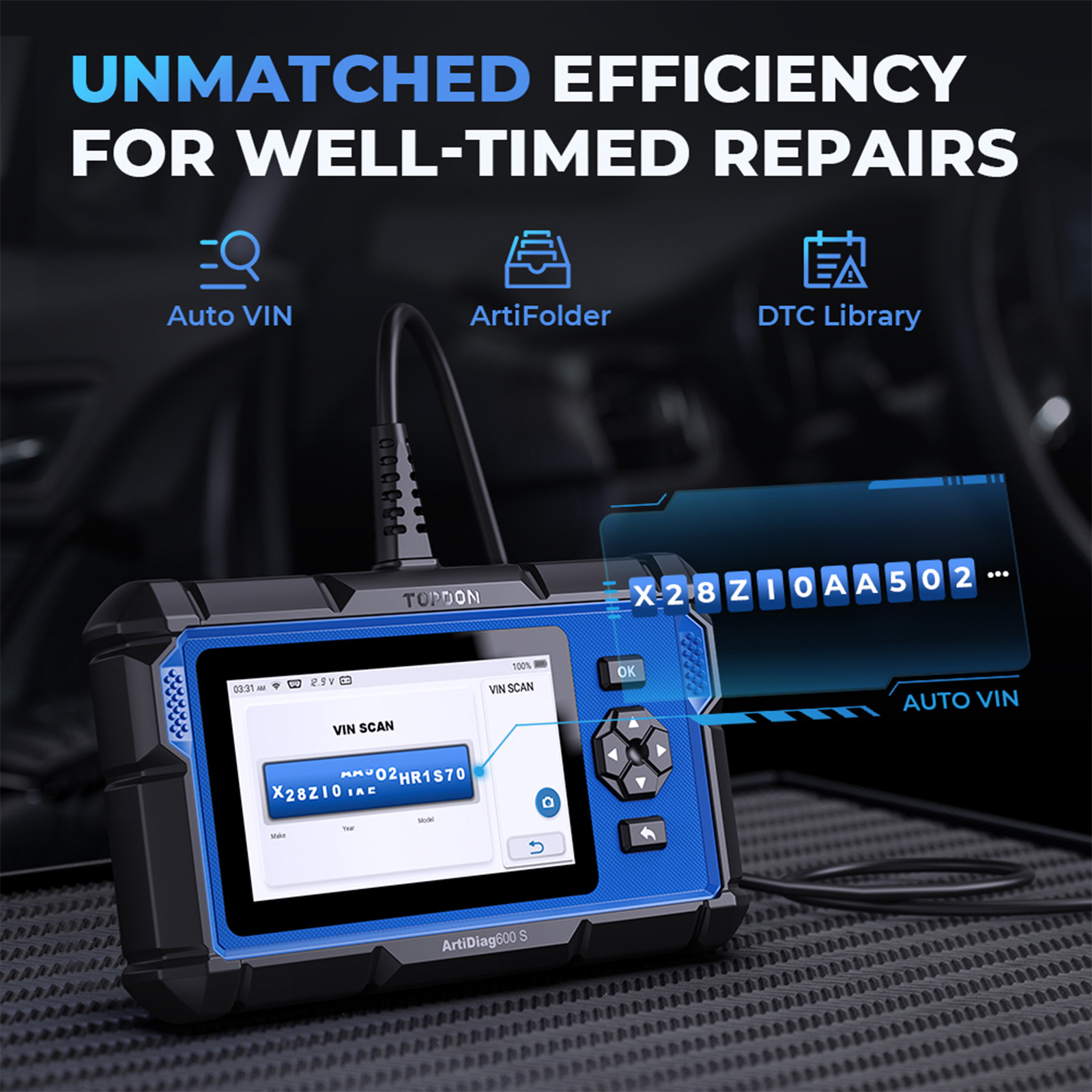 One-touch AutoVIN Technology: automatically identify the vehicle, and match the proper diagnostic software.