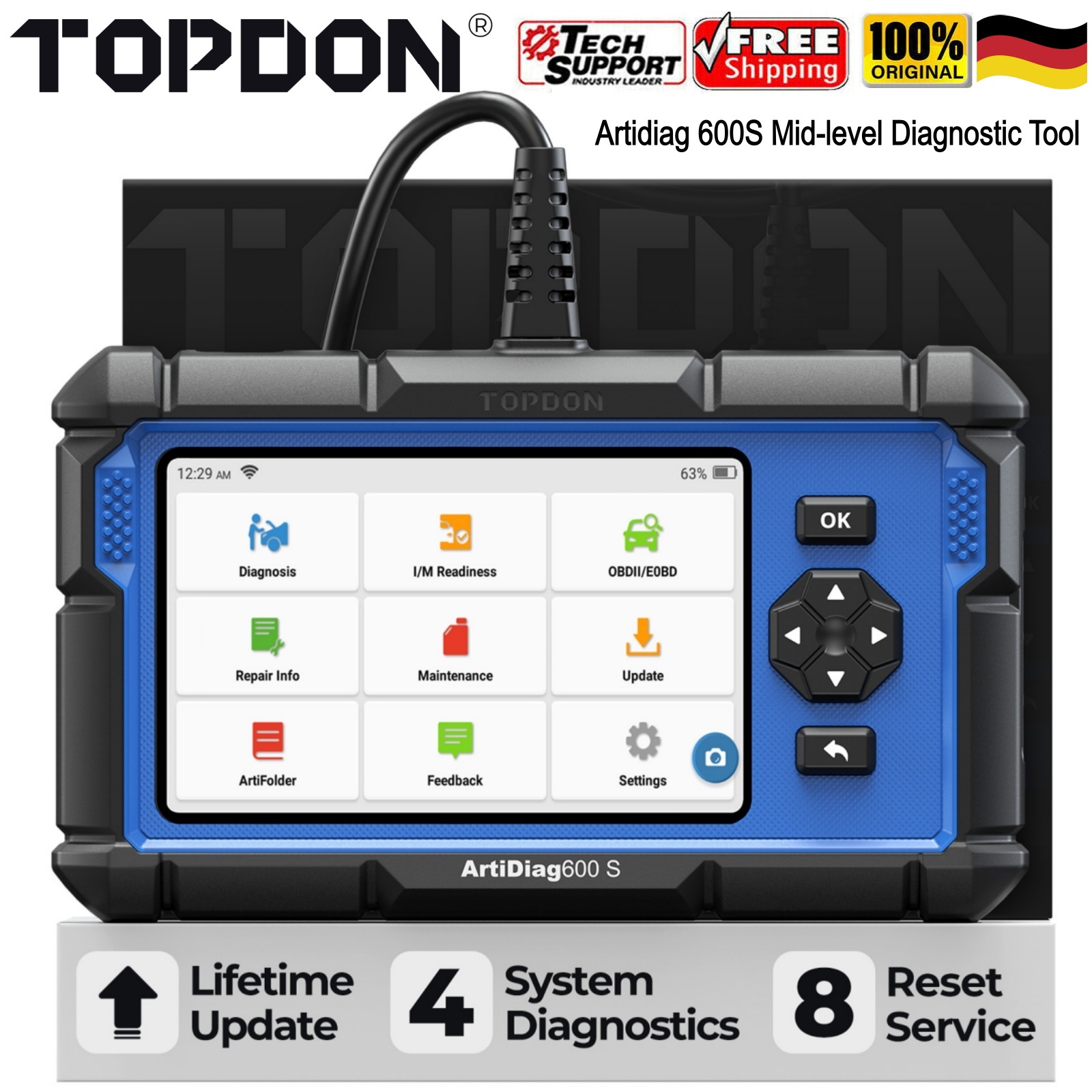 TOPDON Artidiag 600S AD600S with 4 System Diagnostic Tool and 8 Reset Services Free Lifetime Upgrade