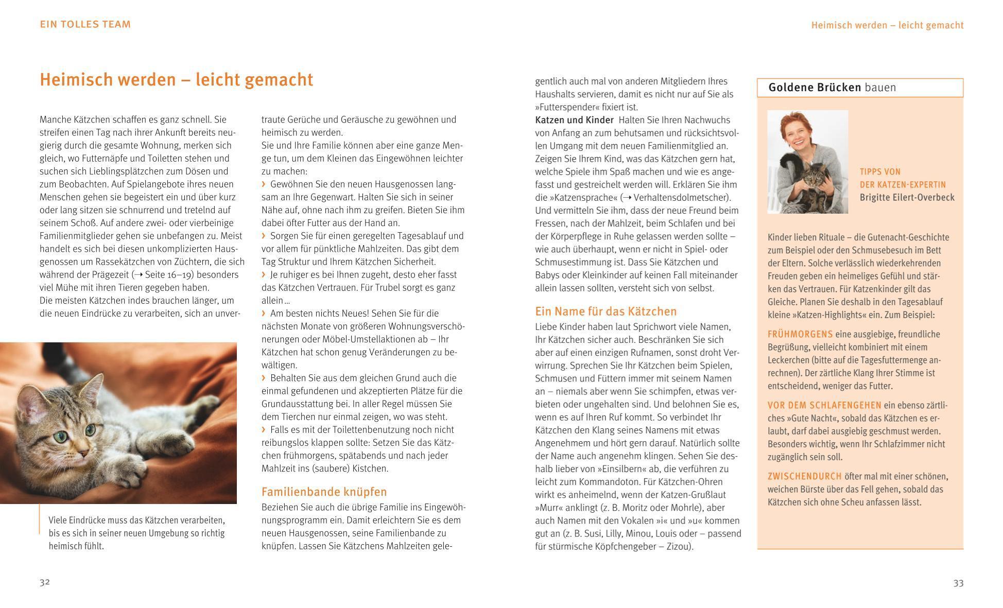 Tschüss Langeweile! Kätzchen bringen Schwung in Ihr Leben. Die kleinen Energiebündel spielen bis zur wohligen Erschöpfung, schmusen mit Hingabe und erforschen jeden Winkel. Was ein Katzenkind in den ersten Monaten lernt, prägt sein ganzes Leben. Gestalten Sie diese wichtige Zeit so, dass aus Ihrem Kätzchen eine wunderbare Katze wird. Wie das geht, erklärt die Katzenexpertin Brigitte Eilert-Overbeck im 'GU Tierratgeber Unser Kätzchen'. Sie beantwortet alle wichtigen Fragen rund um das Wohlbefinden des Kätzchens: von der Ausstattung über die Ernährung, Pflege und Gesundheitsvorsorge bis hin zur Beschäftigung. Rasse-Porträts unterstützen die Auswahl, und erprobte Tipps helfen beim Aufbau einer vertrauensvollen Beziehung. Der GU-Verhaltensdolmetscher erklärt typische Verhaltensweisen der Katzen. Und mit SOS - was tun ist Hilfe im Notfall garantiert.