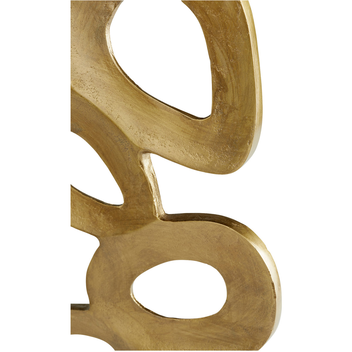 This gilded floor standing sculpture consists of several cascading concentric forms, of varying scales, that are conjoined with each other. The Chellean Lux #1 sculpture is supported by a modest dark monochrome base. This abstract floor sculpture is best suited for any residential or commercial space.