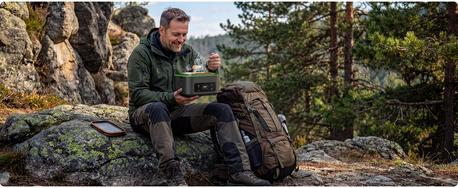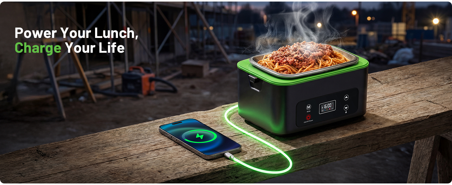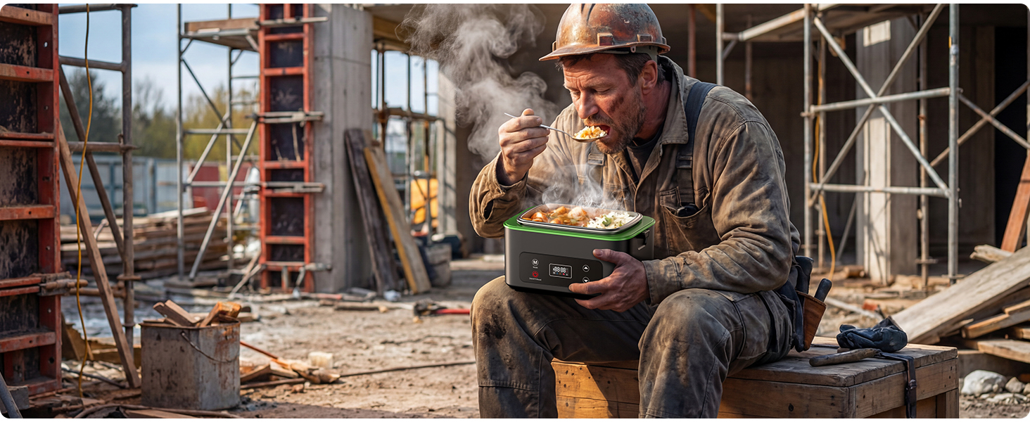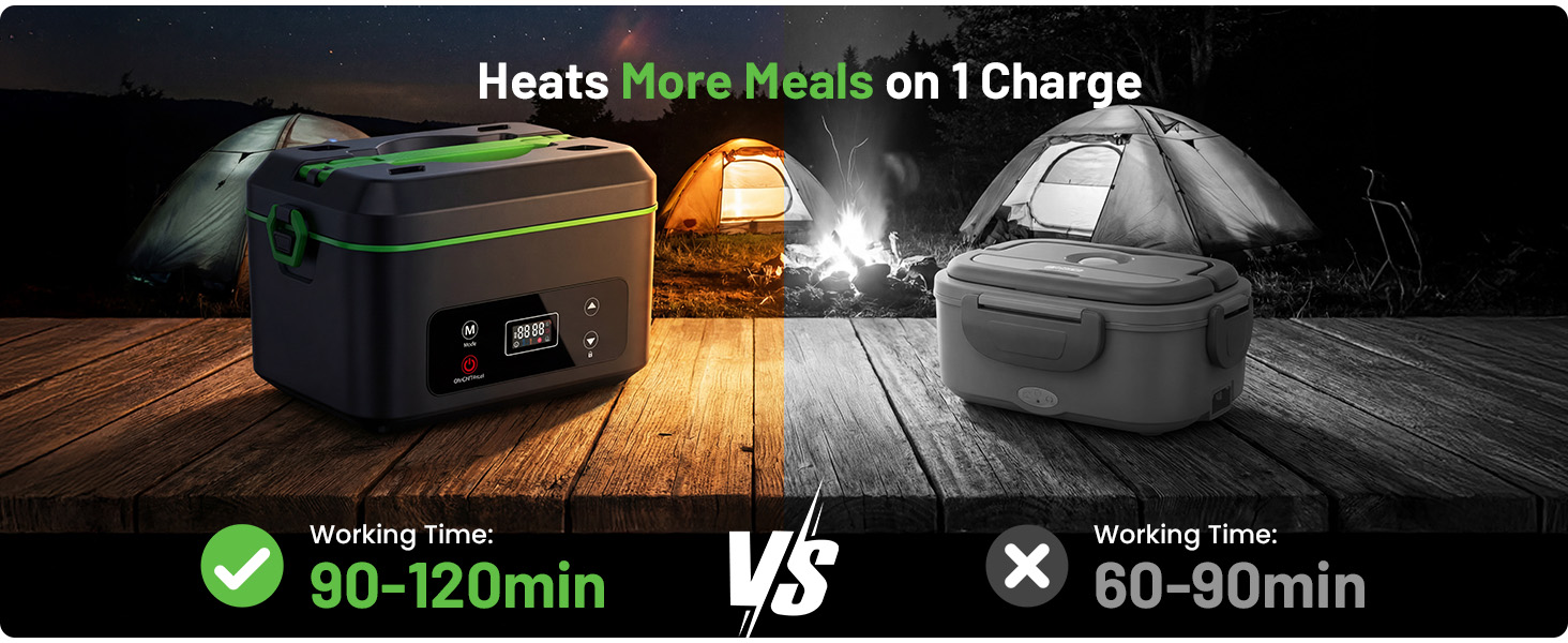 12000MAH RECHARGEABLE BATTERY: This battery operated lunch box warmer powers two full heating cycles per charge—perfect for adults on long shifts or road trips. This high-capacity cordless lunch warmer is a reliable companion for construction sites and outdoor use. To ensure optimal charging speed and 9V compatibility, please use the included original power adapter and cable