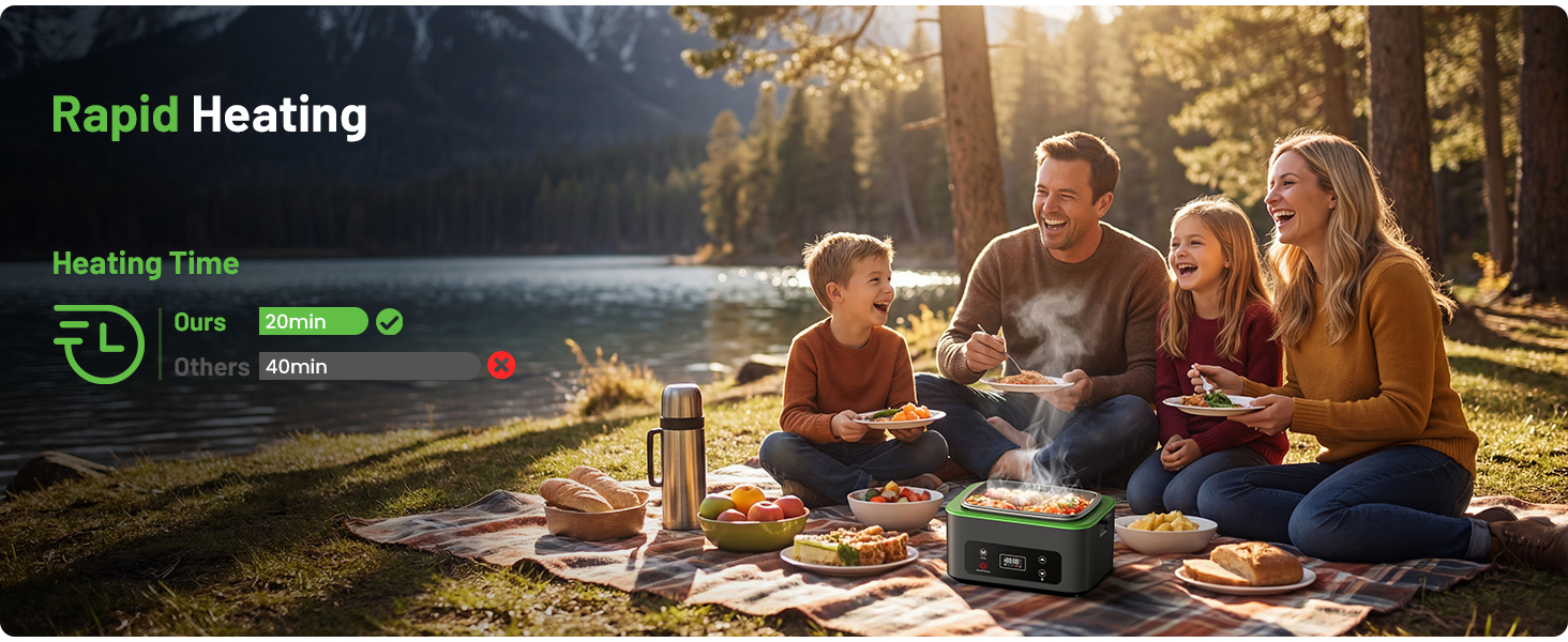 CORDLESS EVEN HEATING: This cordless heated lunch box delivers fast, even heating without burnt edges—ideal as a portable heated lunch box for office, car and travel meals when no microwave is available