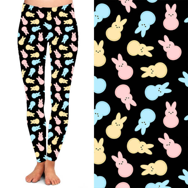 Our Marshmallow Bunny Bliss Peeps Womenâs Leggings feature the same irresistible pastel bunny peeps print you loveâsoft, playful, and perfectly sweet.