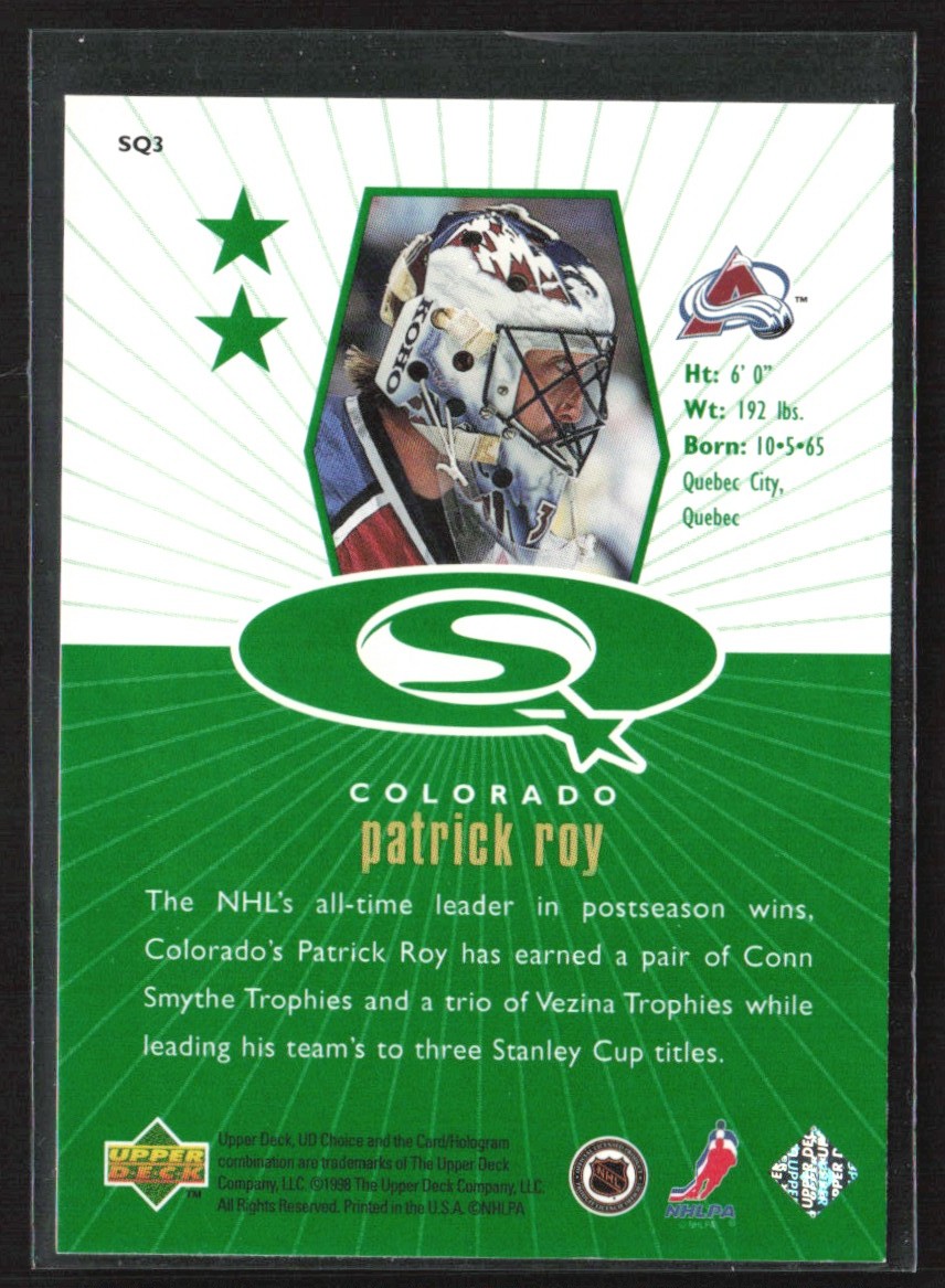 | Patrick Roy 1998-99 UD Choice Starquest Green #SQ3 Colorado Avalanche |