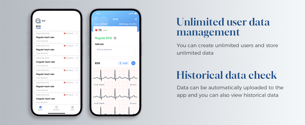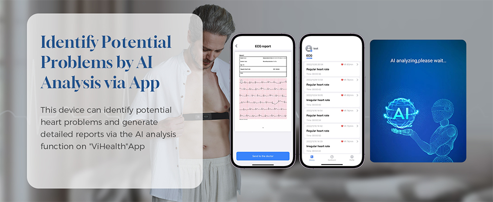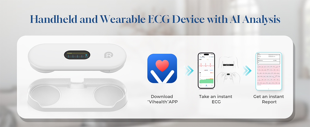 【UNLIMITED DATA STORAGE ON APP】After connecting to the ViHealth app via Bluetooth, you can synchronise your data with the app and synchronise and share the ECG report and AI analysis results with your health advisor