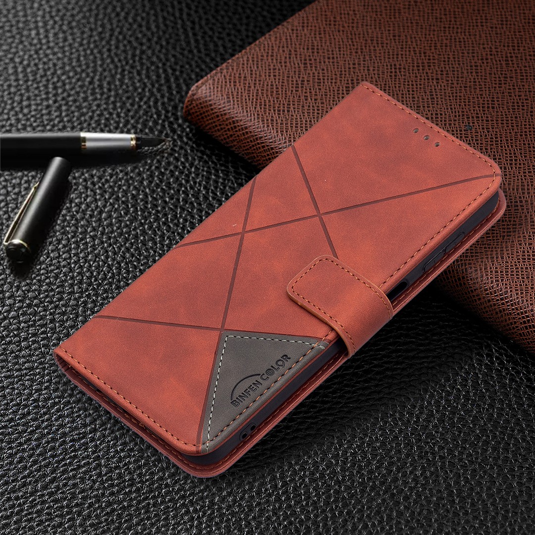 Stylish PU leather + TPU material phone case with a convenient flip-folding stand, embossed diamond pattern design, secure card slots, and reinforced edges for drop-proof and shockproof performance.