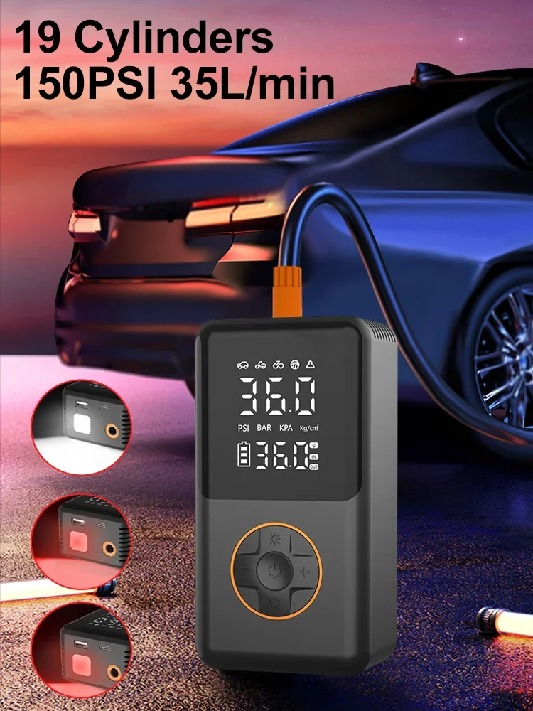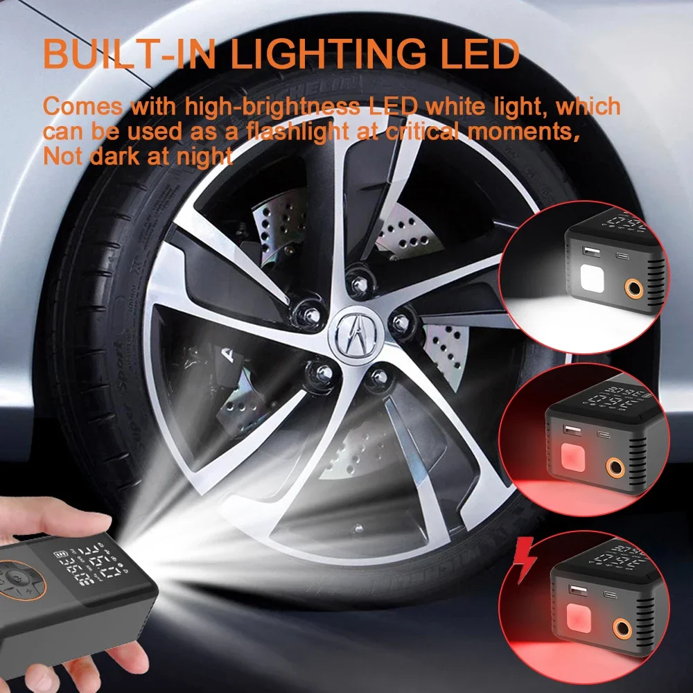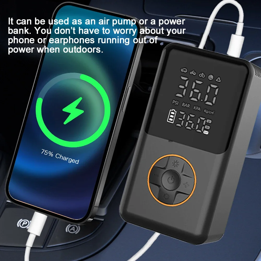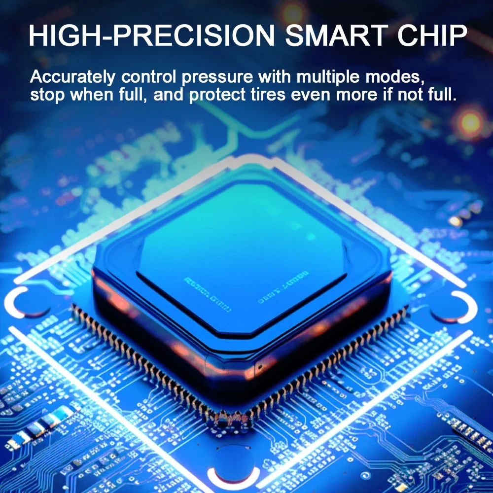 2. Precision with High-accuracy Intelligent Chip: Equipped with a high-accuracy intelligent chip, the electric air compressor provides precise pressure measurements, allowing for timely awareness of tyre conditions to ensure safe travels. Just set your desired pressure, and the device will automatically stop inflating once it's reached, preventing overinflation and ensuring reliability.