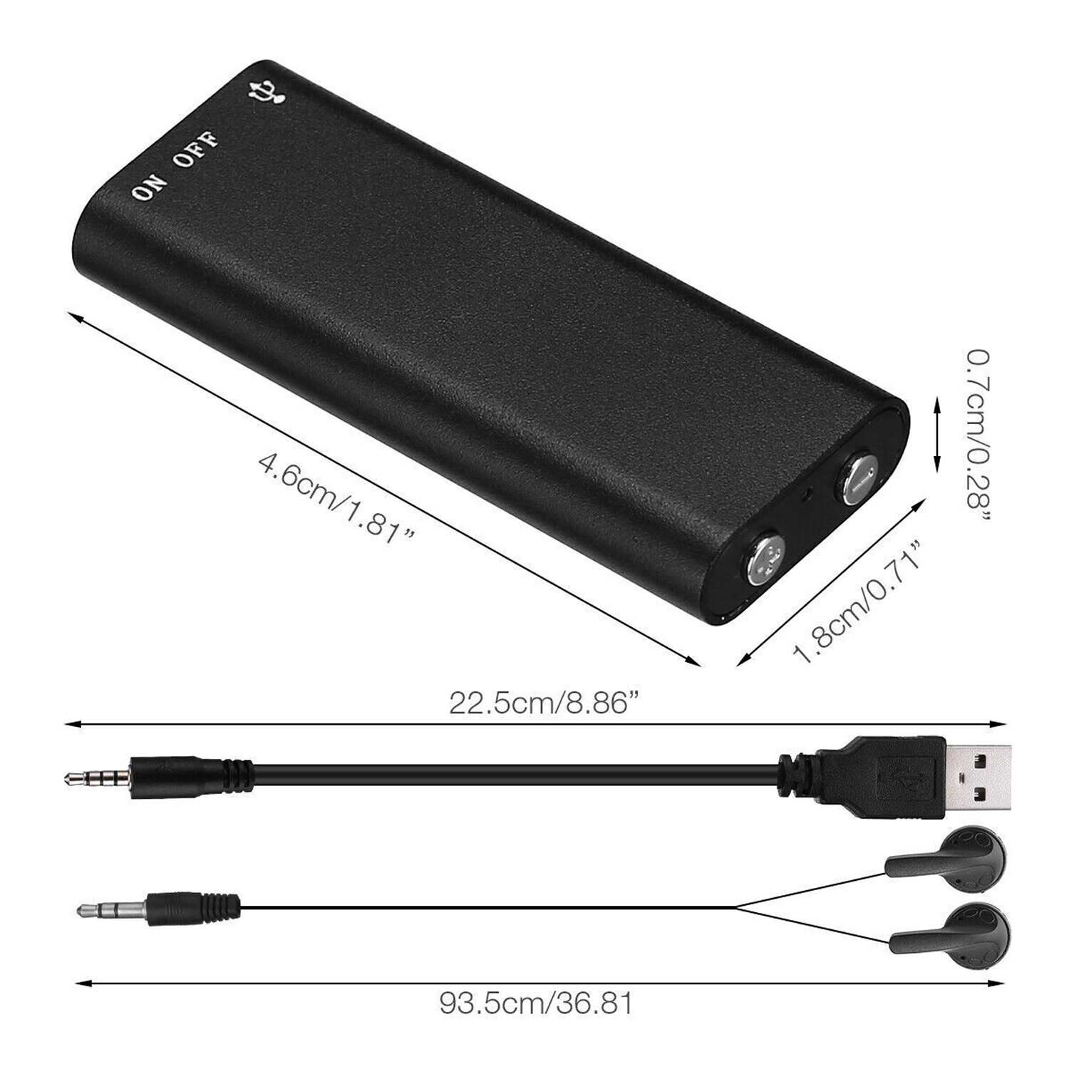 16GB Compact Digital Voice Recorder & MP3 Player - 96-Hour Storage, USB Charging
