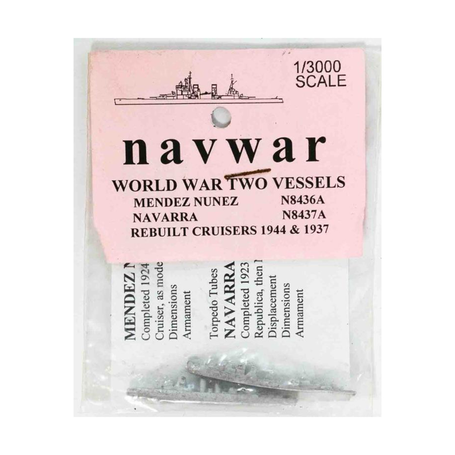 NavWar World War II Naval Vessels 1/3000 Scale Mendez Nunez, Navarra Rebuilt Cruisers 1944 & 1937 (MINT/New)