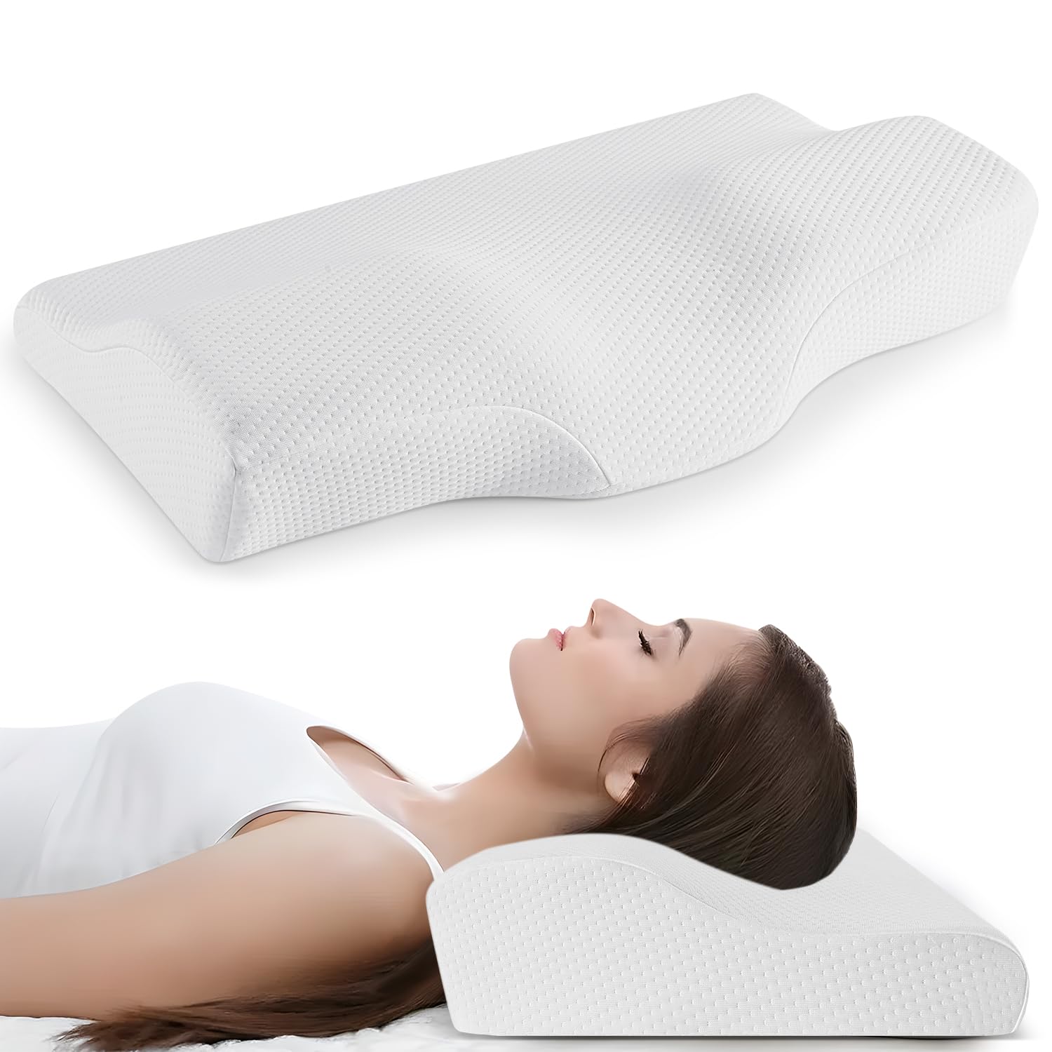 Cervical Neck Pillow, Ergonomic Memory Foam Pillows for Standard Size, White