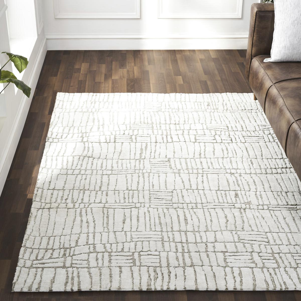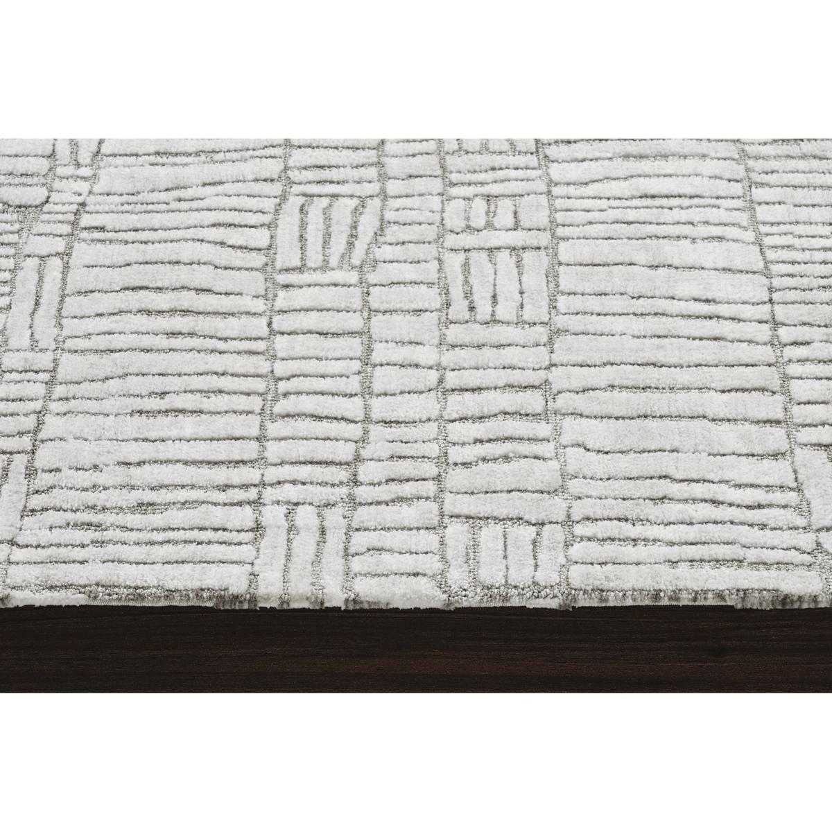 Playful yet polished, this rug is right at home in the creative contemporary space. Composed of machine knitted, micro polyester with a compilation of ivory and sand tones, it offers comfort in a captivating form. With five size structures to choose from, its grandest size being 9 x 12 feet and its most petite at 3 x 4, it holds the potential for arrangement in any part of the home.