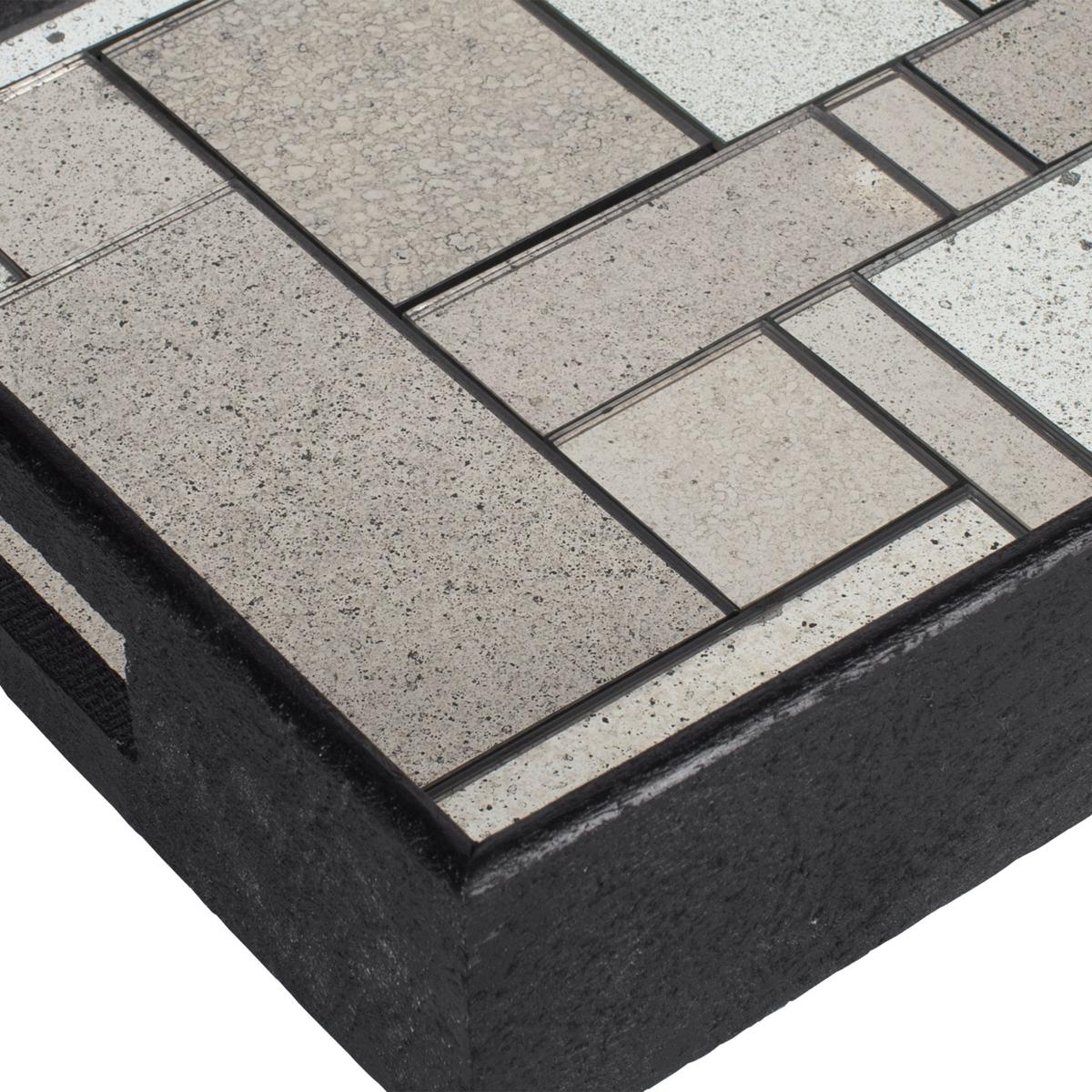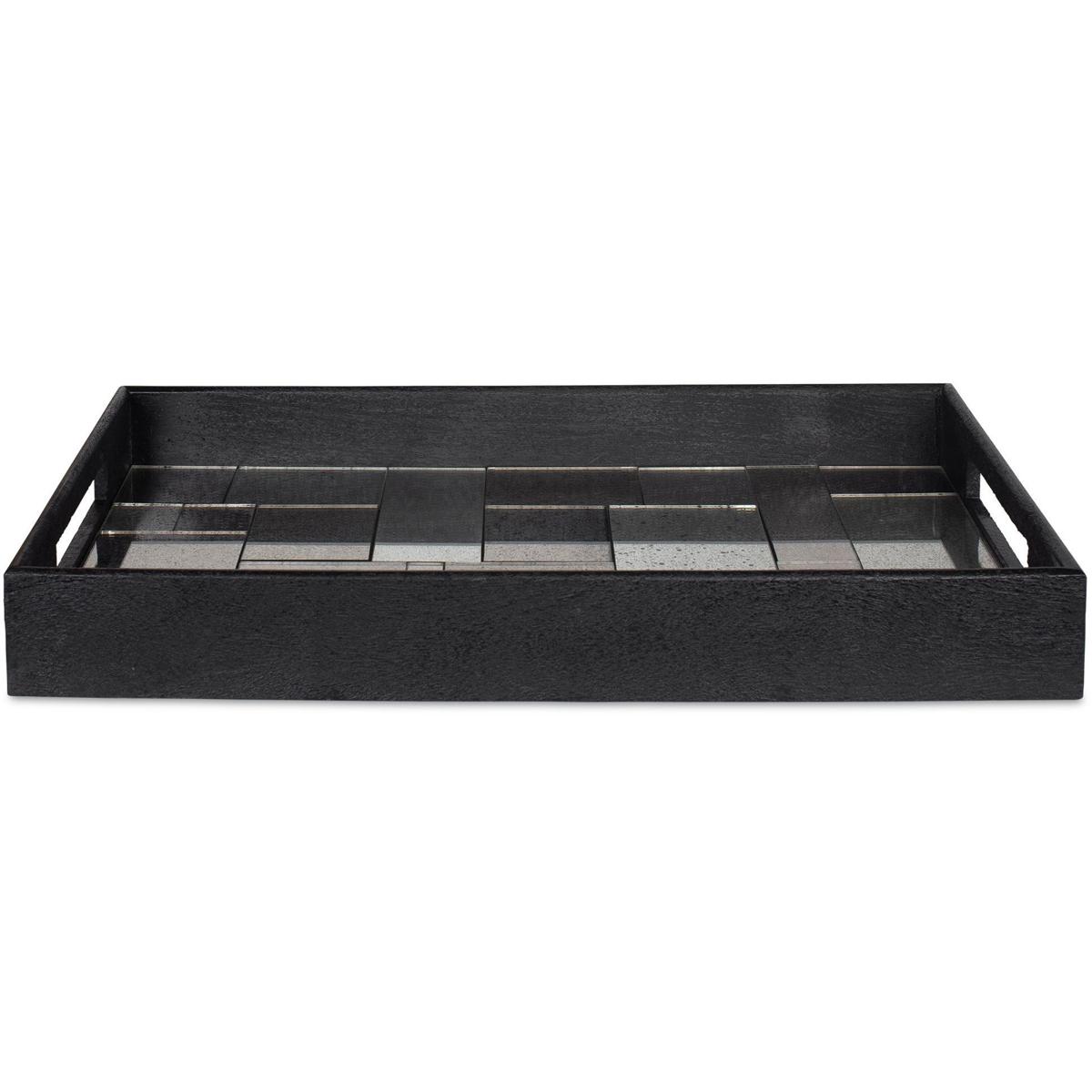 Elevate Your Hosting Experience With This Sleek Black Mango Wood Tray Featuring A Striking Antique Mirrored Mosaic Design. With Built-in Handles And A Contemporary Aesthetic, It's The Perfect Blend Of Function And Style For Any Space.