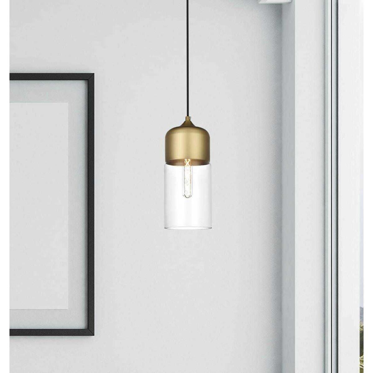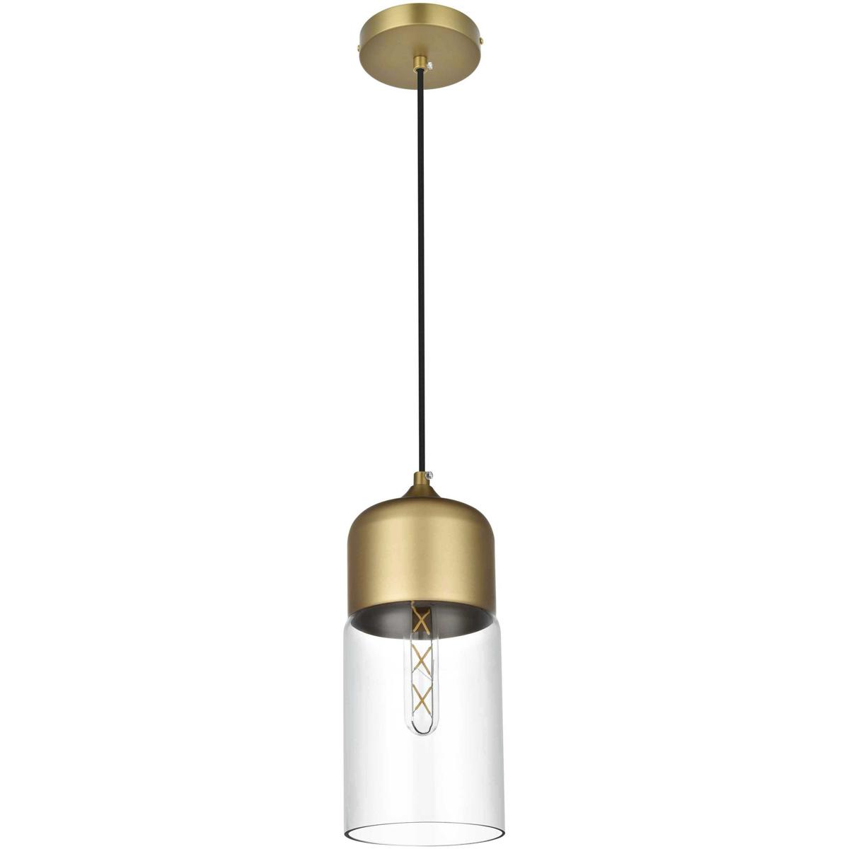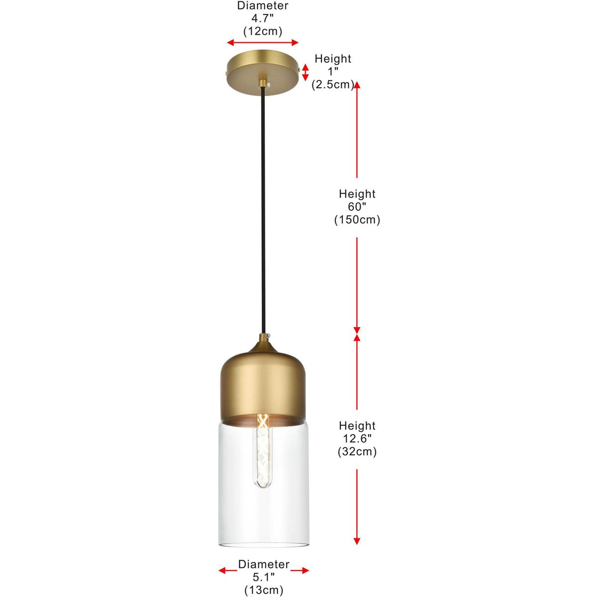 The perfect marriage of vintage charm and modern refinement, Ashwell pendant lamps blend well with décor from both Old World and New. A rounded iron frame in a satini gold finish comes with adjustable black hanging cord. The narrow cylindrical clear glass shade envelopes an E26 tubular filament bulb (not included) to complete the overall look. Ideal for a breakfast nook, kitchen, office, or studio.