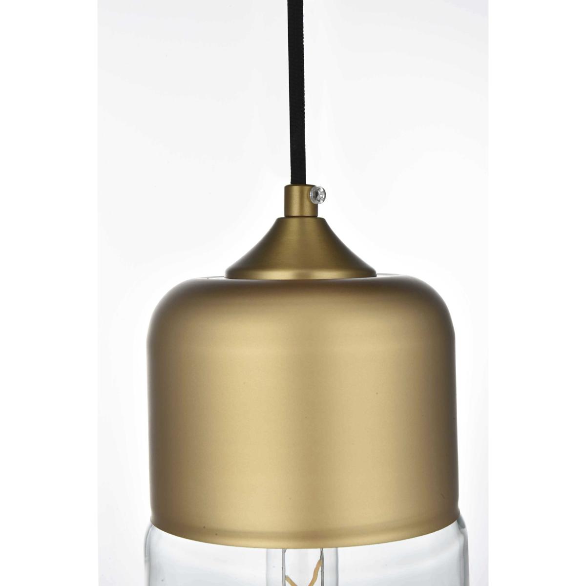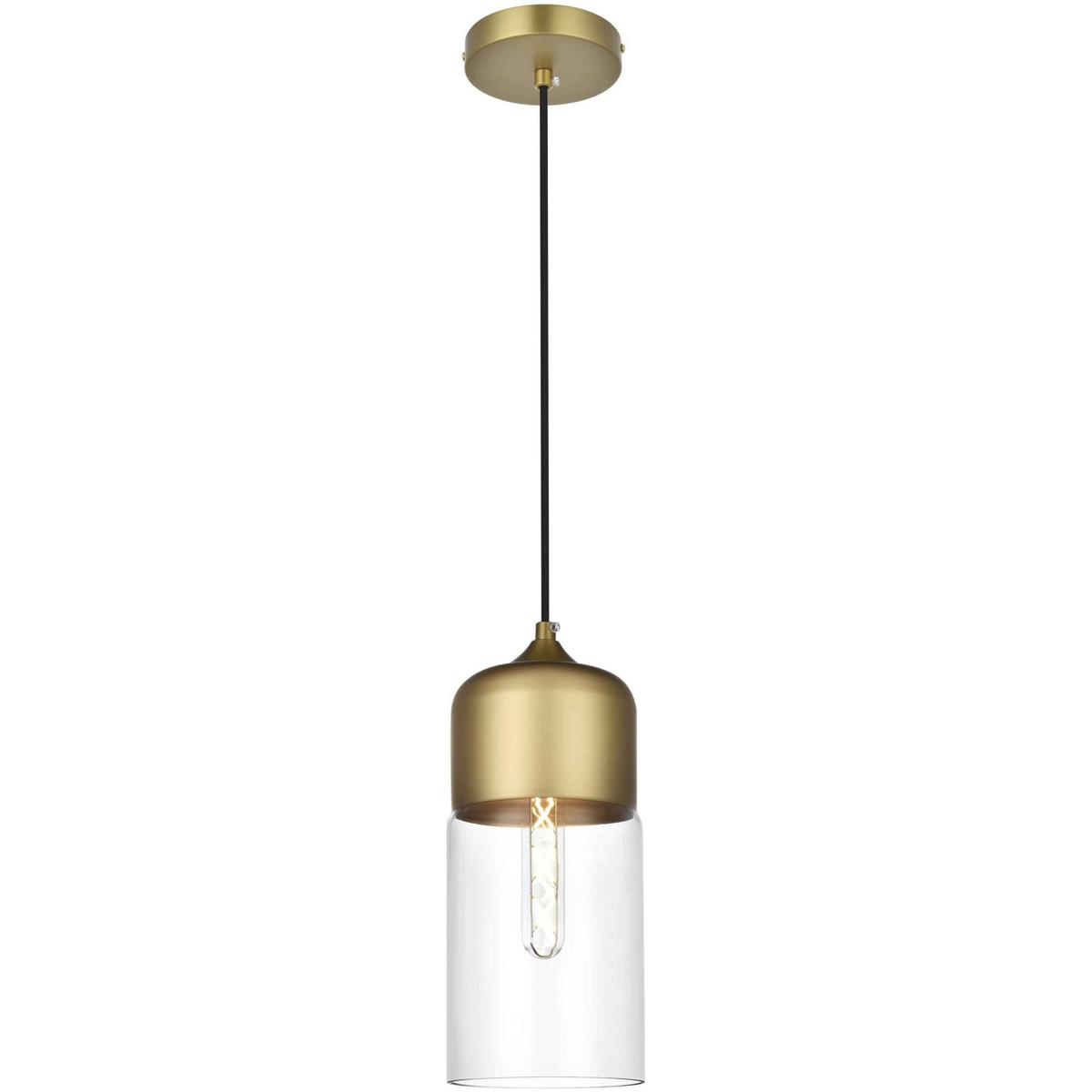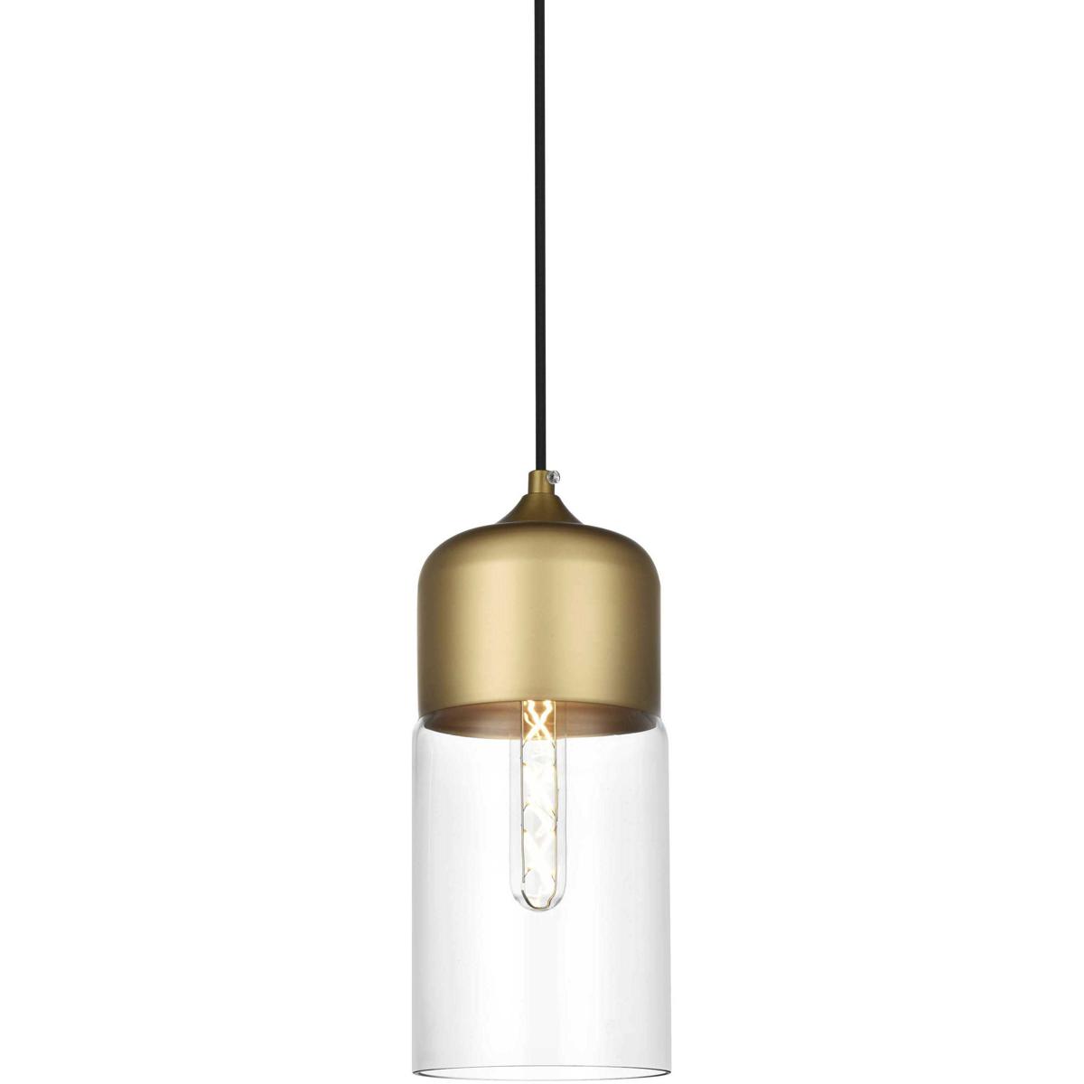 The perfect marriage of vintage charm and modern refinement, Ashwell pendant lamps blend well with décor from both Old World and New. A rounded iron frame in a satini gold finish comes with adjustable black hanging cord. The narrow cylindrical clear glass shade envelopes an E26 tubular filament bulb (not included) to complete the overall look. Ideal for a breakfast nook, kitchen, office, or studio.