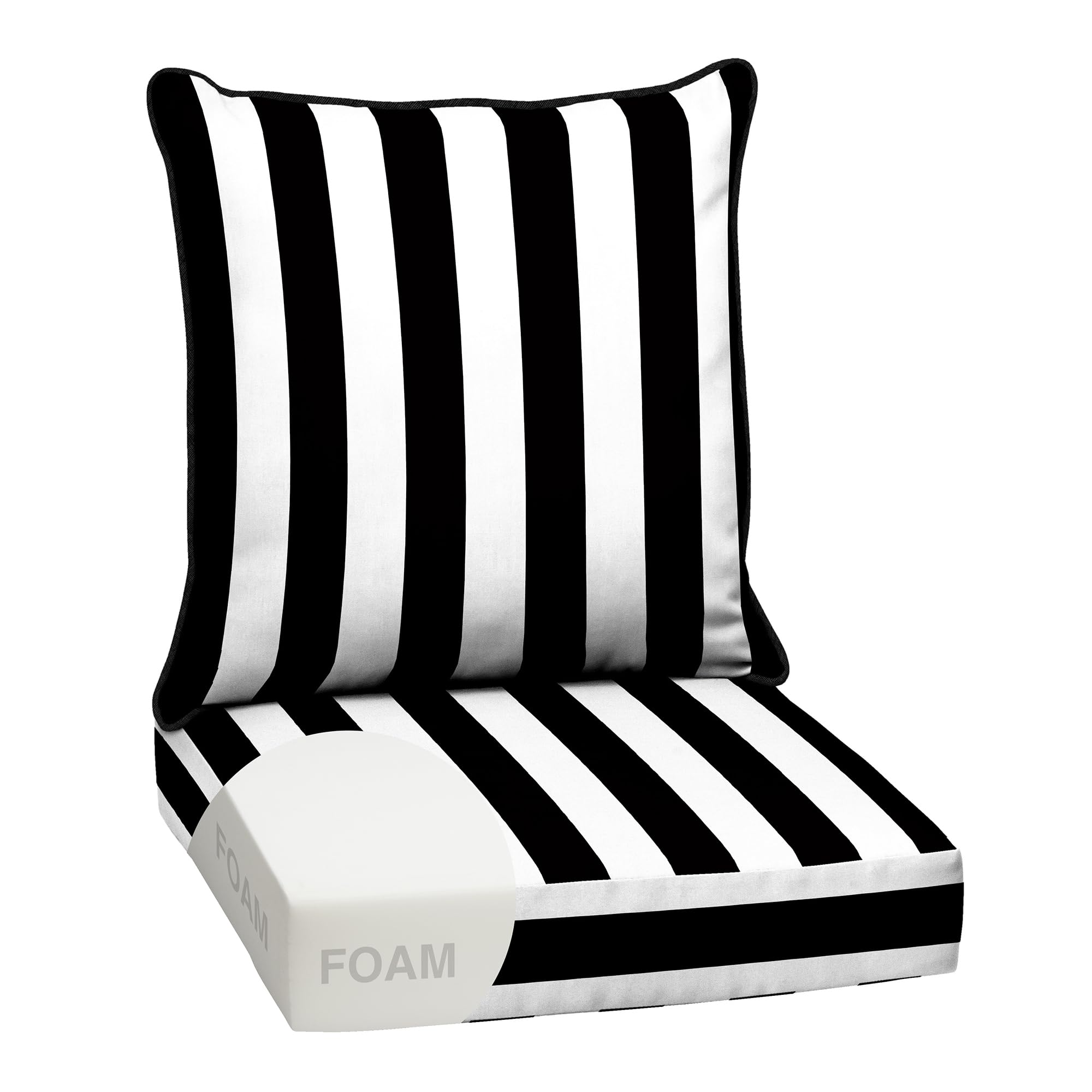 Arden Outdoor Foam Deep Seat Cushion Set, 24 in x 24 in, Weather-Proof, Fade Resistant Patio Cushion, Bottom and Back Cushion for Chair, Sofa, and Couch Black Cabana Stripe