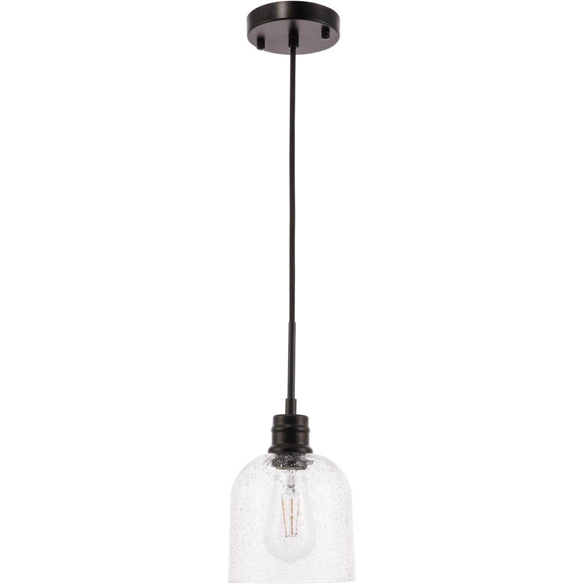The Gabe Collection of hanging pendant lamps are sure to illuminate spaces of any size in your home. Its many available finishes--black, chrome, or brass--and its round clear bubble glass shade will add visual interest and stylish accent to your home. Whether it illuminates your dining room or dazzles in the living room, you and your guests will always feel the welcoming light at any time of day (light bulbs not included).