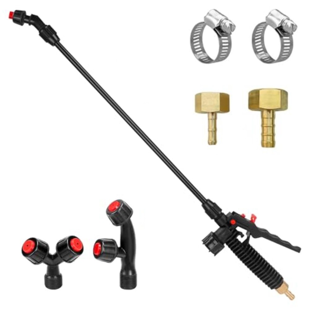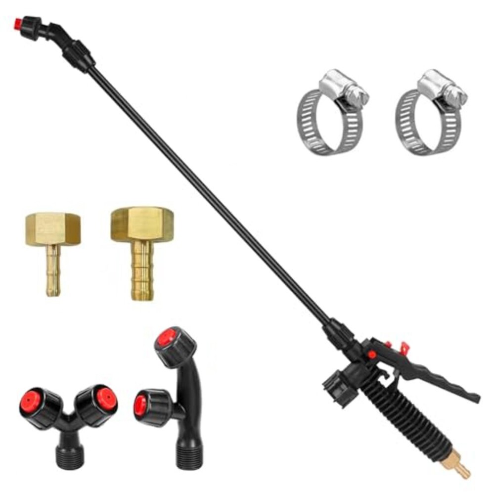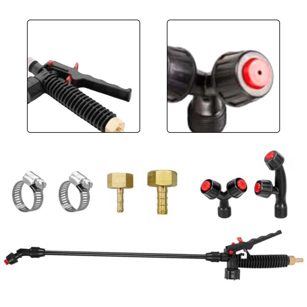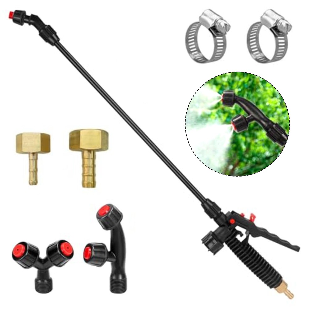 * for Versatile Nozzle Options: The kit includes three distinct nozzle types—fan, vertical dual-head, and horizontal dual-head—allowing users to customize spray patterns to suit various tasks effectively.
