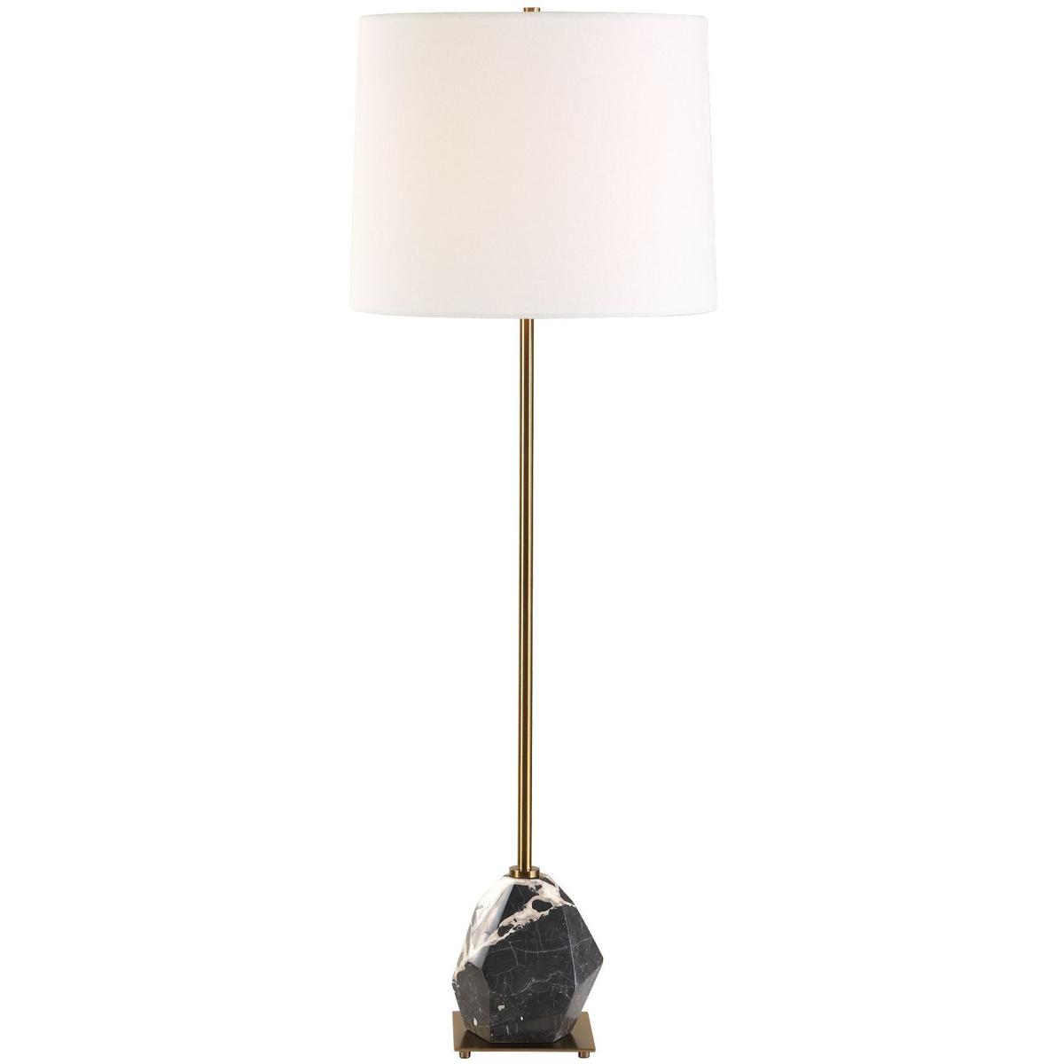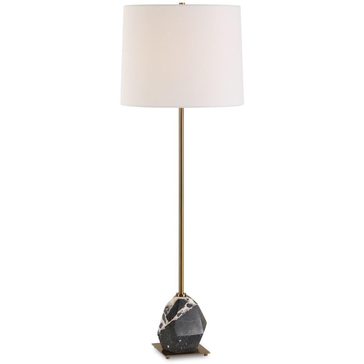 This Tall Buffet Lamp Features An Asymmetrical, Faceted Black And White Panda Marble Base. The Natural Beauty Of The Stone Is Accentuated By Antique Brass Plated Details, Resulting In A Piece That Is Both Artistic And Functional. The Slightly Tapered Round Hardback Shade Is Covered In A Crisp White Linen Fabric. True To The Nature Of Natural Materials, Each Piece Will Have Unique Marbling And Veining Throughout.