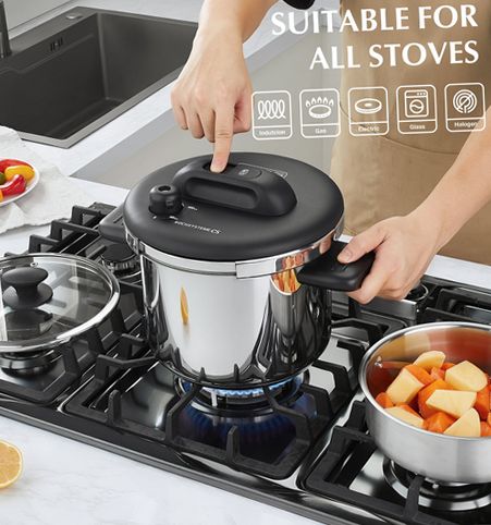 The Koch Systeme CS 8.5-Quart Electric Pressure Cooker is designed to meet the needs of busy households seeking efficient and safe cooking solutions. Its generous 8.5-quart capacity accommodates large family meals or batch cooking sessions with ease. Constructed from high-quality stainless steel, this pressure cooker offers durability and a polished finish that simplifies cleaning. The appliance serves multiple functions as a pressure cooker, steamer, and simmer pot, making it a versatile addition to any kitchen. Safety is paramount with eight advanced features including a secure locking lid that prevents pressure buildup unless properly sealed, an auto-locking valve that blocks opening under pressure, and a steam alert whistle to signal when cooking is complete. This multi-safety system ensures peace of mind during use. Compatible across various stovetop types such as gas, electric, ceramic, and induction, it provides flexibility for different kitchen setups. By reducing cooking times while preserving essential nutrients and flavors, this pressure cooker supports healthier meal preparation without sacrificing taste or convenience.