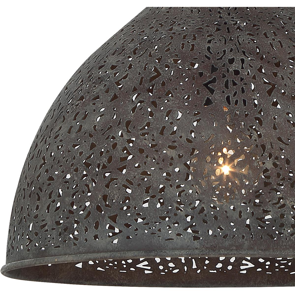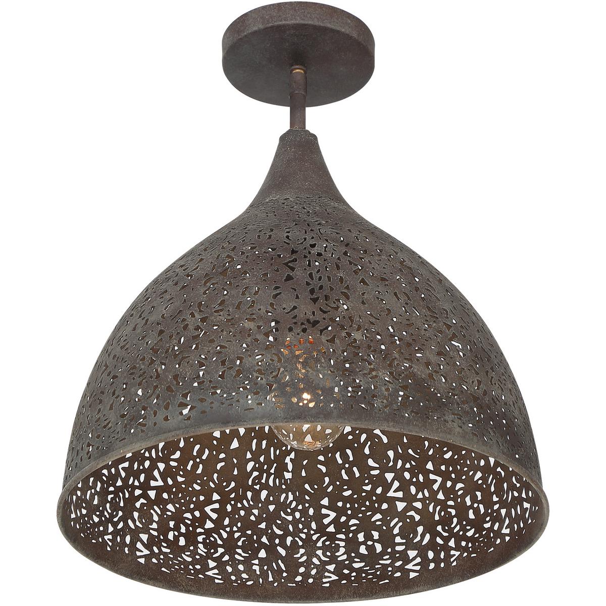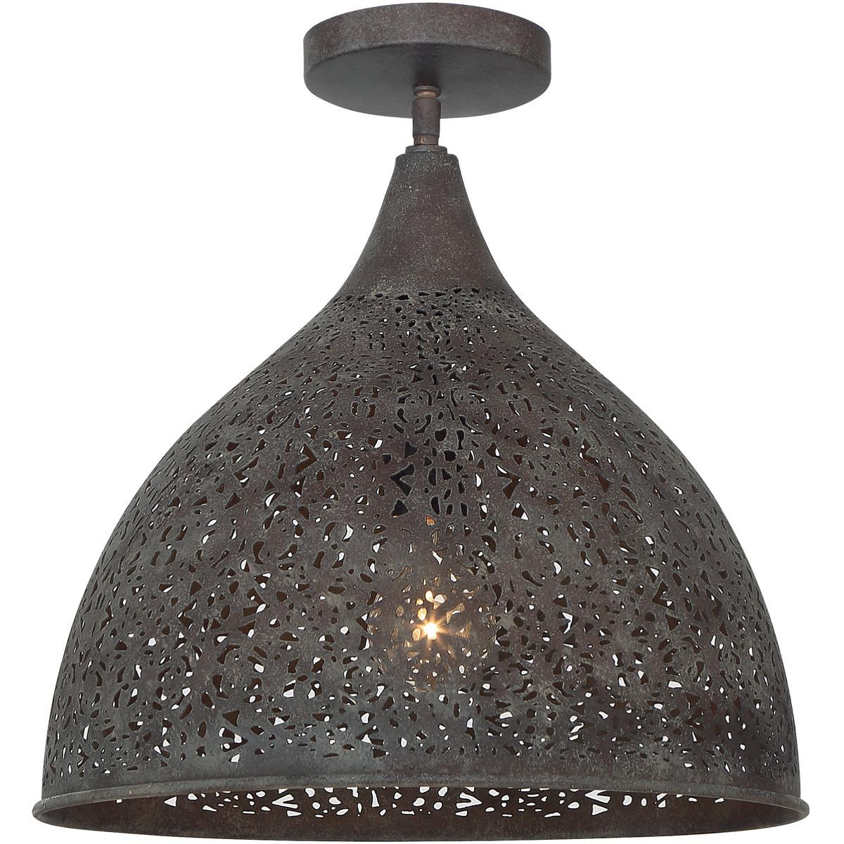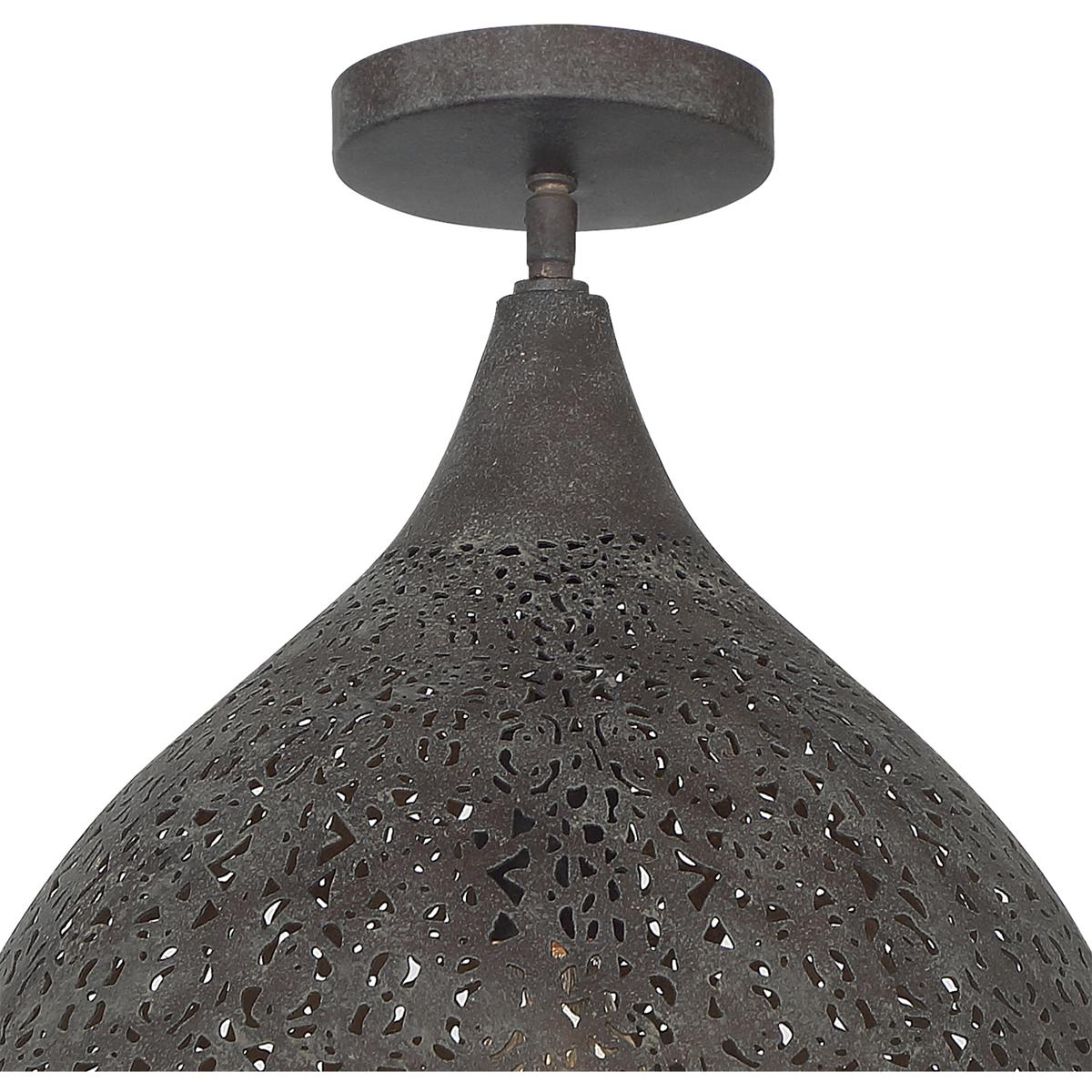 The classic silhouette of the Jasmine semi-flush is defined by the intricate filigree detail. Light illuminates through the metal pattern creating beautiful distribution of light to its surroundings.