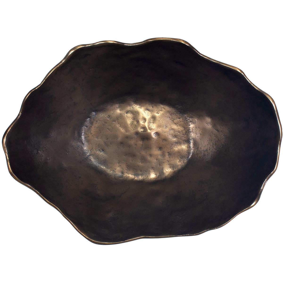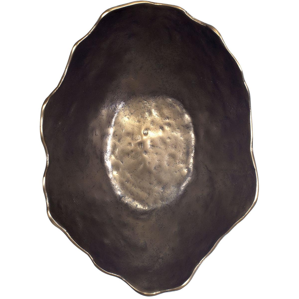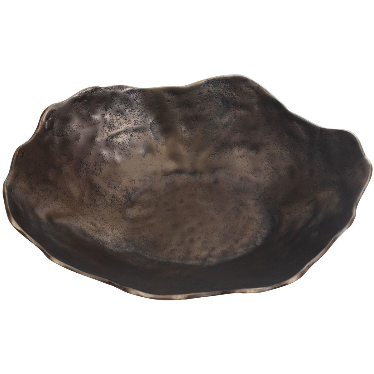 Elevate Your Decor With This Stunning Sculptured Cast Aluminum Bowl, Featuring An Organic Wavy Edge And A Rich, Golden Dark Bronze Finish And Hammered Texture. Perfect As A Statement Centerpiece Or A Sophisticated Accent Piece, Its Handcrafted Texture Adds Depth And Elegance To Any Space. May Be Hung On Wall Or Used As Tabletop Accessory. Safe For Outdoor Use.