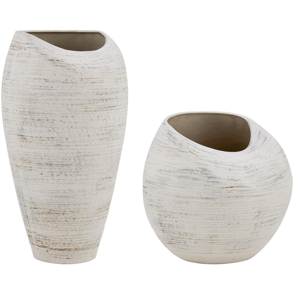 This Pair Of Earthenware Vases Is Covered In A Creamy White Finish With Subtle Blue And Rust Brushstrokes For Added Dimension. Display Empty Or With A Fresh Arrangement. Safe For Outdoor Use, But Protection From Freezing Temperatures Is Recommended. Sizes: S-8x12x8,L-10x14x10