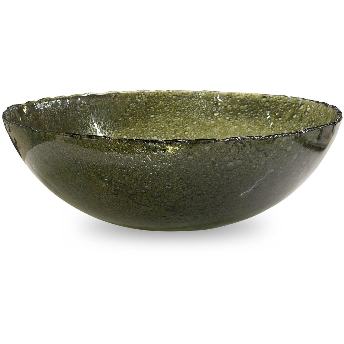 This Elegant, Hand-blown Glass Bowl Features A Captivating Mottled Pattern Of Blue, Green, And Earthy Brown Tones, Giving It A Unique, Organic Feel. The Subtle, Ridged Rim Adds A Delicate Texture, Completing Its Artful And Sophisticated Look.