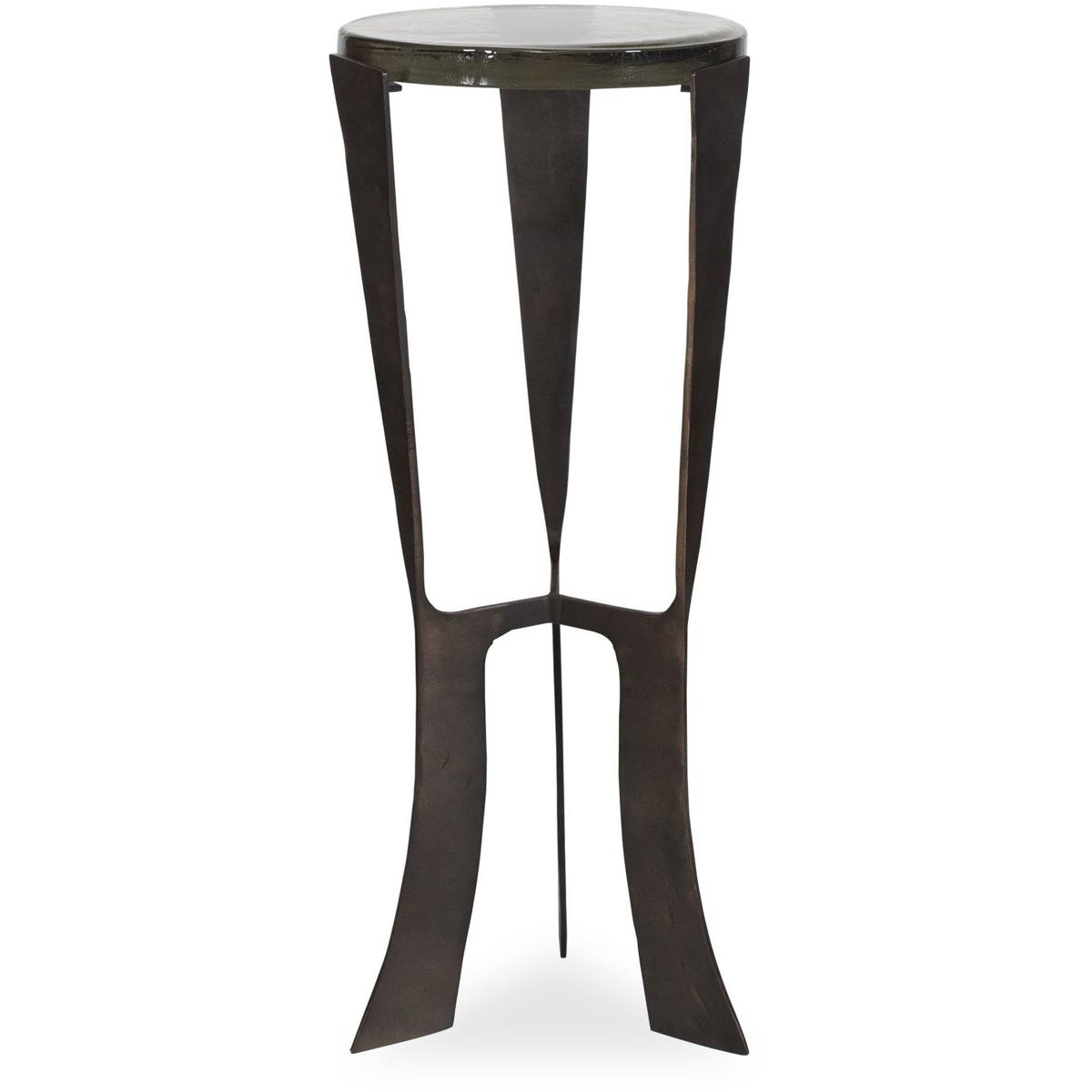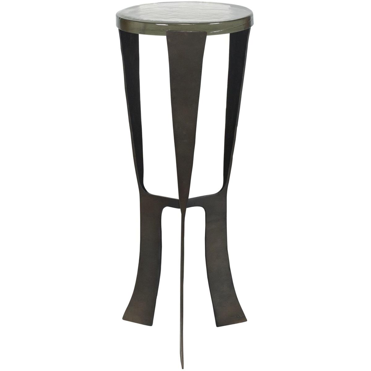 This Sculptural Drink Table Is A True Statement Piece, Meticulously Handcrafted From A Blend Of Recycled Cast Glass Sitting Atop A Cast Metal Base In Dark Bronze.