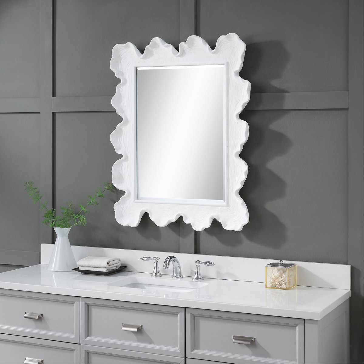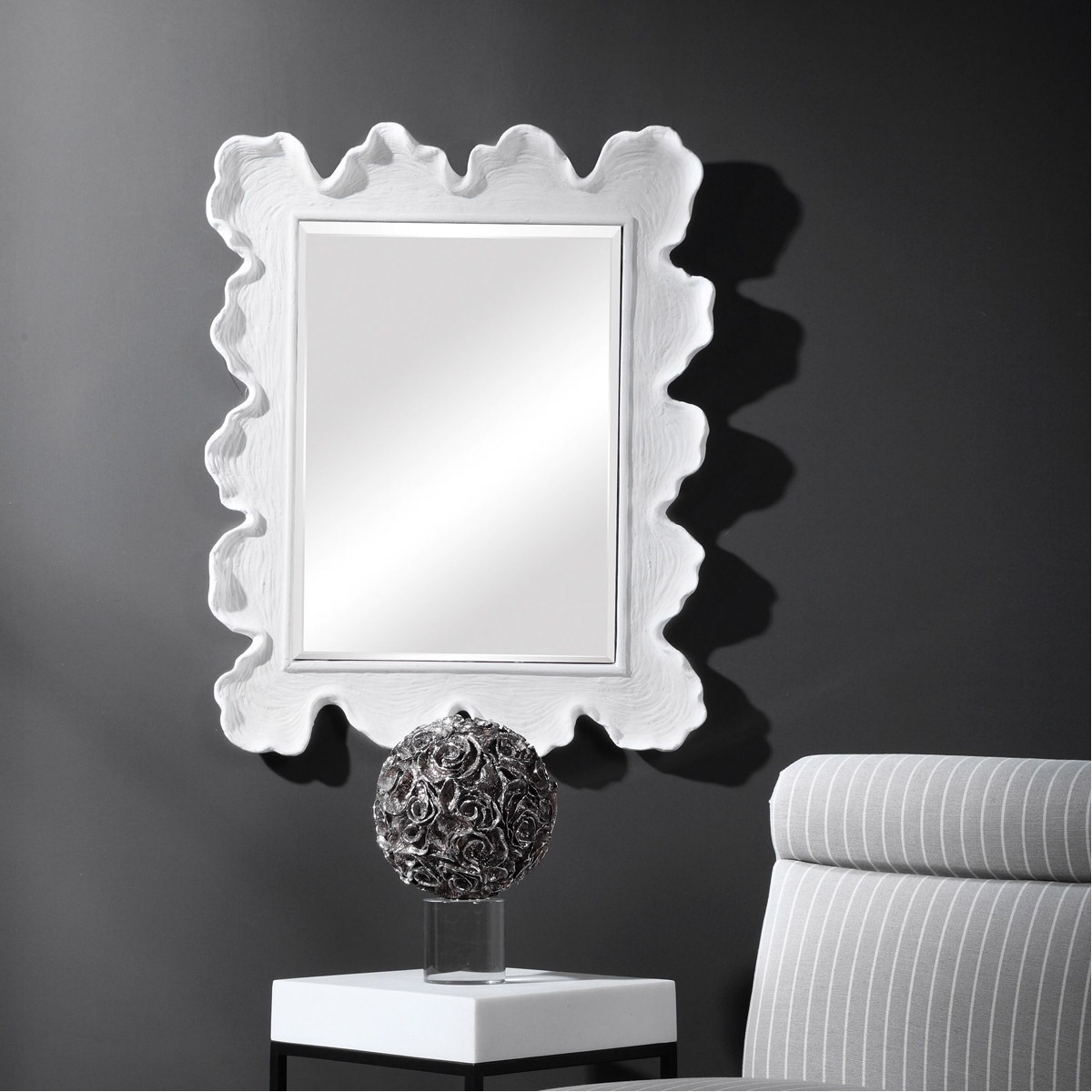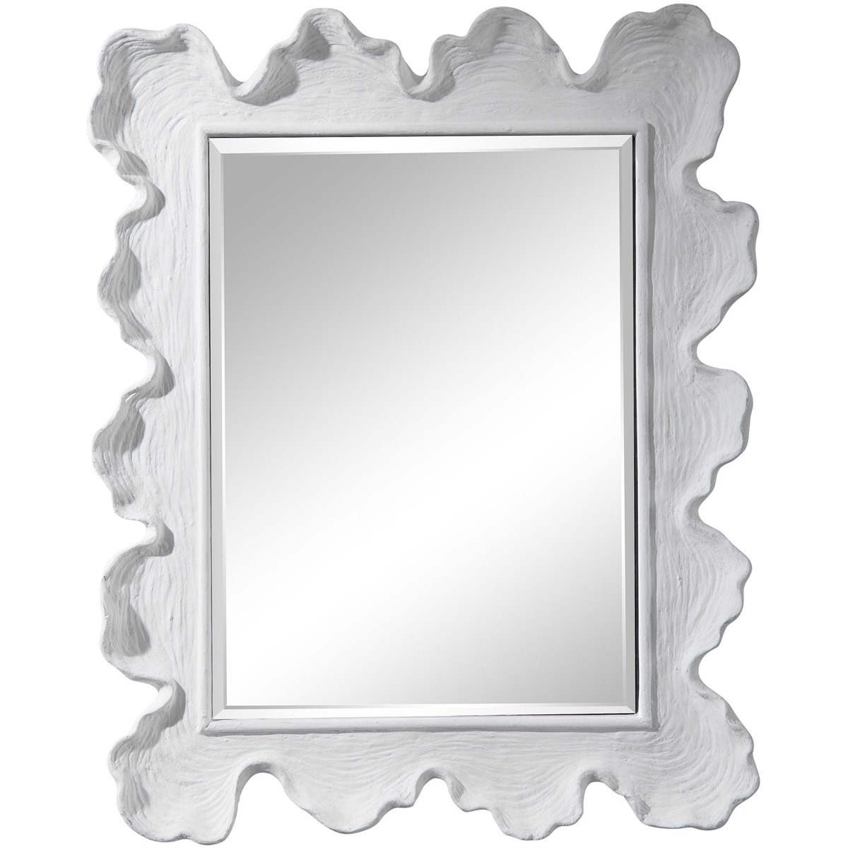 Reminiscent Of White Coral, This Mirror Showcases A Contemporary Coastal Design. The Organic Shaped Frame Is Finished In Matte White With Noticeable Waves And Texture. May Be Hung Horizontal Or Vertical.