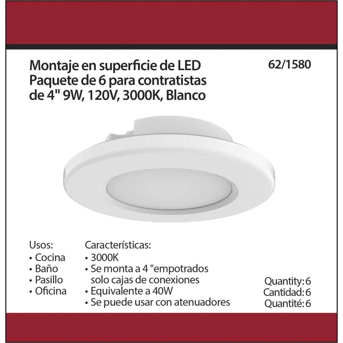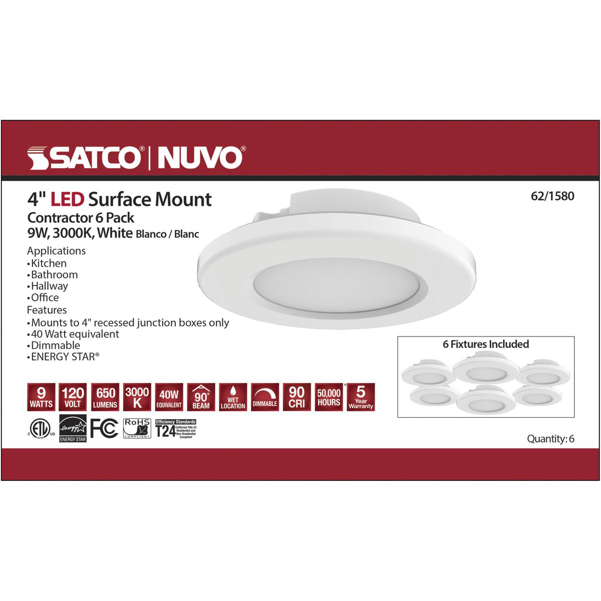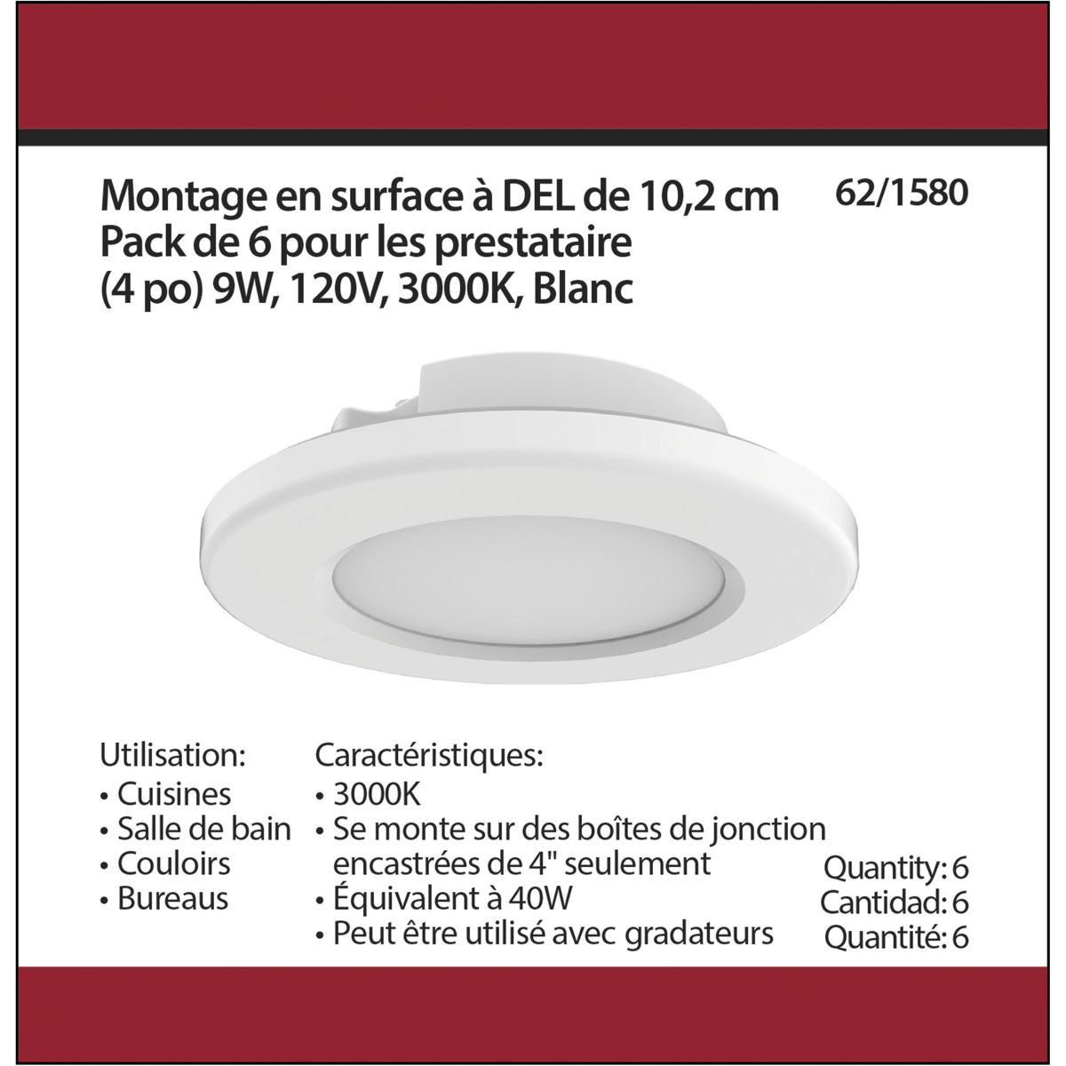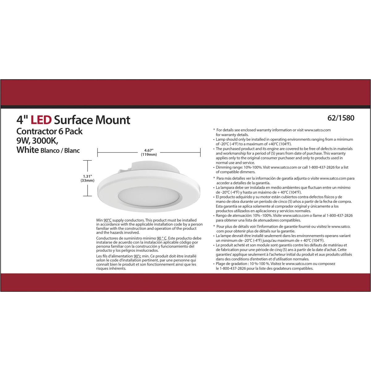 4 Inch - LED Surface Mount Fixture - 3000K - 6-Unit Contractor Pack - White