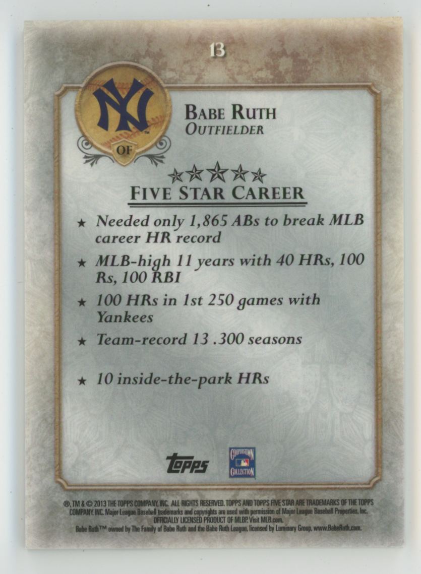 | Babe Ruth 2013 Topps Five Star /75 #13 New York Yankees |