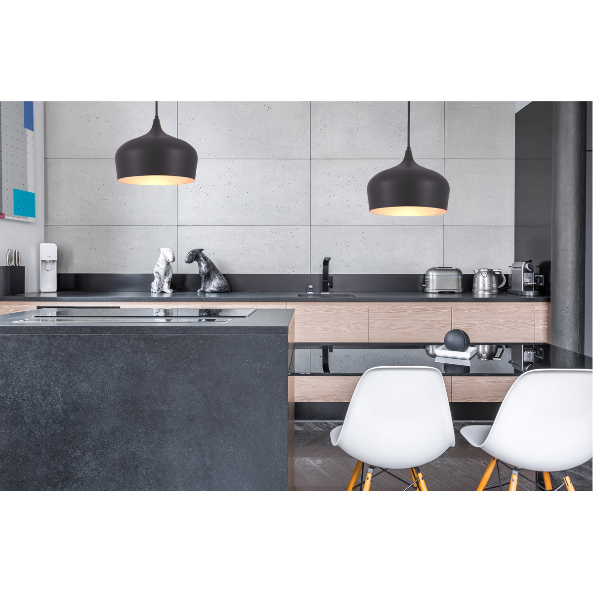 Set the right mood in a kitchen, office, or bedroom with Nora collection hanging lights. Sleek teardrop shaped or larger chalice-shaped aluminum shades come in a smooth white or sexy matte-black finish; larger lamps feature a wood detail. Contrasting vintage brass finish on the inside of the shade gives these pendant lamps just the right amount of attitude.